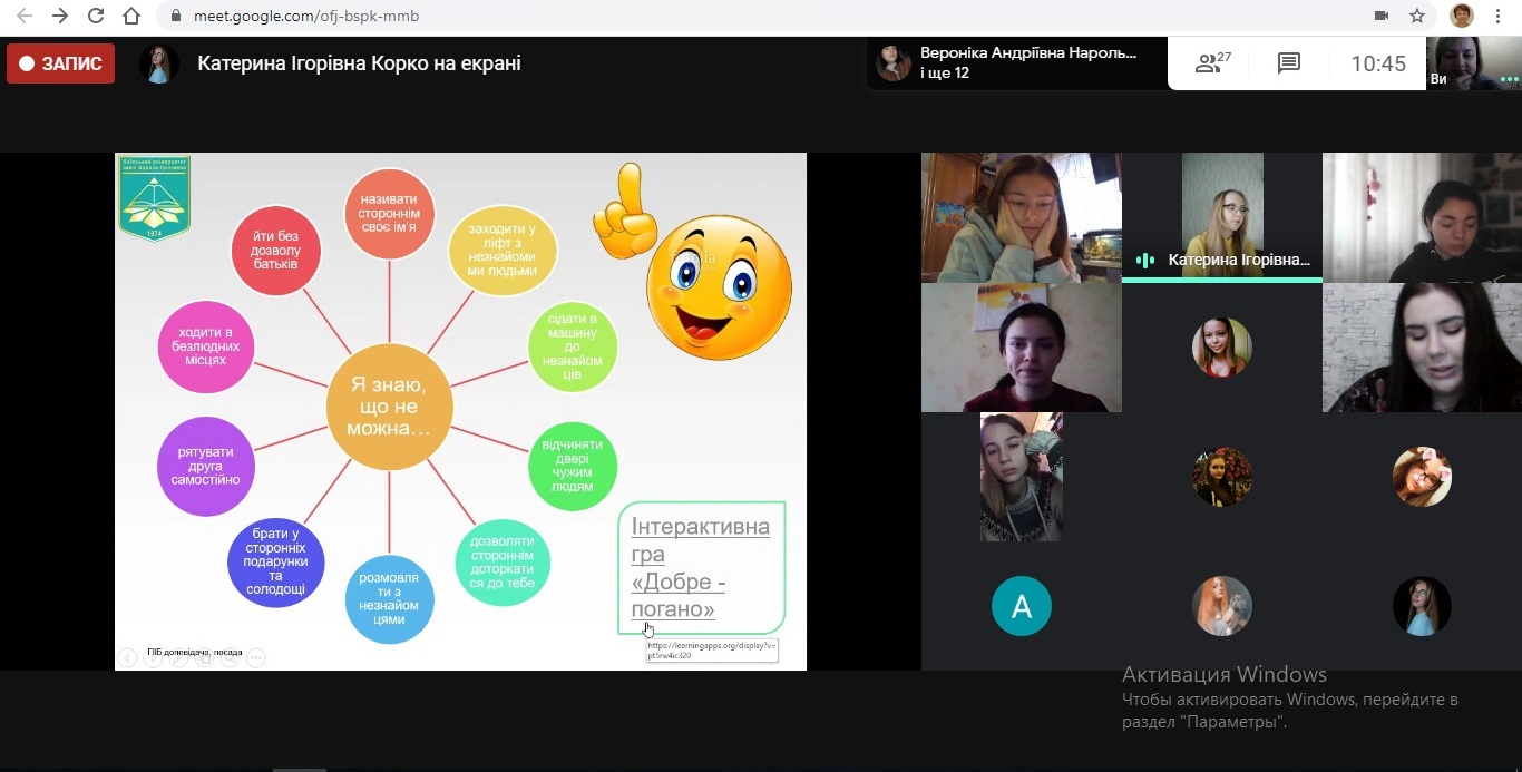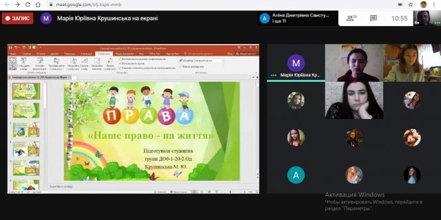 У перебігу заходу відбулась дискусія на теми: здобутки сучасної дошкільної освіти щодо ознайомлення дітей дошкільного віку з правами; права дітей та роль дорослих у їх захисті; моделі педагогічного партнерства вихователів закладів дошкільної освіти з батьками щодо ознайомлення дітей з правами. За результатами дискусії студенти визначали можливі виклики, що стоять перед вихователями з ознайомлення дітей з правами та продуктивні практики щодо ознайомлення дітей з їхніми правами.