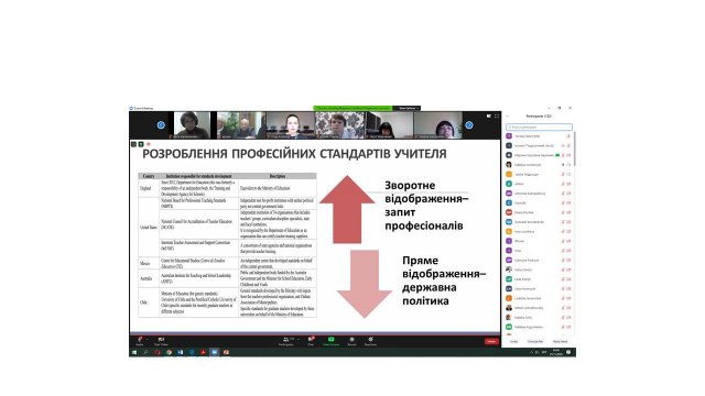 Під час роботи дискусійної платформи «Компетентнісні виміри діяльності сучасного педагога у професійному стандарті вчителя» було представлено й обговорено онлайн-доповіді спікерів конференції: Наталії Авшенюк, завідувача відділу зарубіжних систем педагогічної освіти і освіти дорослих Інституту педагогічної освіти і освіти дорослих імені Івана Зязюна НАПН України, доктора педагогічних наук, старшого наукового співробітника на тему «Концептуальні підходи до розроблення професійного стандарту вчителя: досвід зарубіжних країн»; Лілії Гриневич, проректора з науково-педагогічної та міжнародної діяльності Київського університету імені Бориса Грінченка, міністра освіти і науки України (2016 – 2019 р.р.), кандидата педагогічних наук, доцента на тему «Компетентісний вимір професійного стандарту вчителя Нової української школи»; Олени Ліннік, професора кафедри початкової освіти Київського університету імені Бориса Грінченка, доктора педагогічних наук, доцента на тему «Модель компетентностей вчителя Нової української школи у проекті професійного стандарту»; Ніни Сторчак, державного експерта експертної групи з питань нормативно-правового забезпечення директорату шкільної освіти Міністерства освіти і науки України, кандидата юридичних наук, доцента на тему «Професійний стандарт учителя: правовий вимір застосування інноваційних підходів до визначення компетентностей вчителя»; Наталії Софій, першого заступника директора Державної установи «Український інститут розвитку освіти», кандидата педагогічних наук на тему «Використання професійного стандарту вчителя Нової української школи в контексті сучасних реформених змін»; Ірени Андрощук, начальника сектору професійного розвитку педагогічних працівників Державної установи «Український інститут розвитку освіти», доктора педагогічних наук, професора на тему «Роль трудової функції управління освітнім процесом у діяльності вчителя згідно з професійним стандартом вчителя Нової української школи»; Світлани Івашньової, заступника директора з наукової роботи Інституту післядипломної освіти Київського університету імені Бориса Грінченка, кандидата педагогічних наук на тему «Безперервний професійний розвиток як трудова функція педагога».
