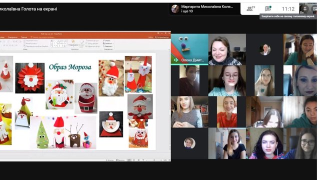 Присутні мали змогу переглянути уривок з віршованої казки Бориса Грінченка «Два морози», ознайомитися з сучасними матеріалами для паперової пластики, оптимальними прийомами роботи з дітьми різних вікових груп. Учасники майстер-класу створювали власних героїв, підкреслюючи їх образну виразність, а також виготовляли іграшкові ялинки та прикрашали їх.