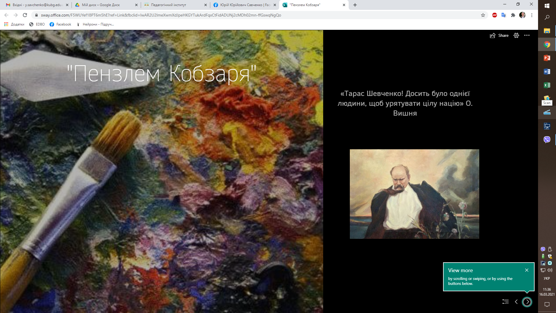 - Вебгалерея «Пензлем Кобзаря» (Модератор: Світлана Кондратюк, кафедра дошкільної освіти) 03.21.