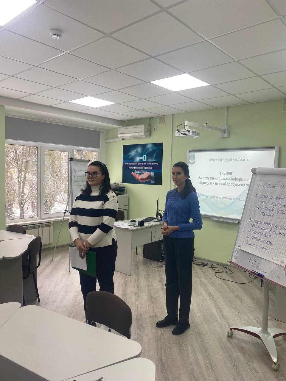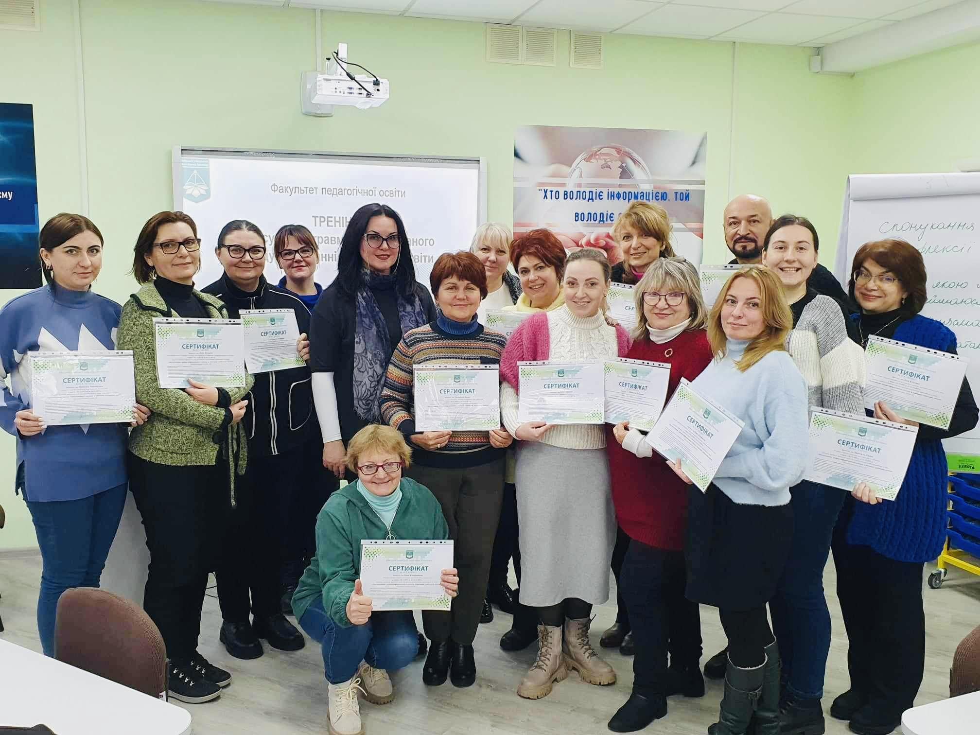 Організатори та модератори тренінгу: Ольга КОТЕНКО, декан Факультету педагогічної освіти, кандидат педагогічних наук; Тетяна ГОЛОВАТЕНКО, доцент кафедри іноземних мов і методик їх навчання, доктор філософії (галузь знань 01 Освіта/Педагогіка).