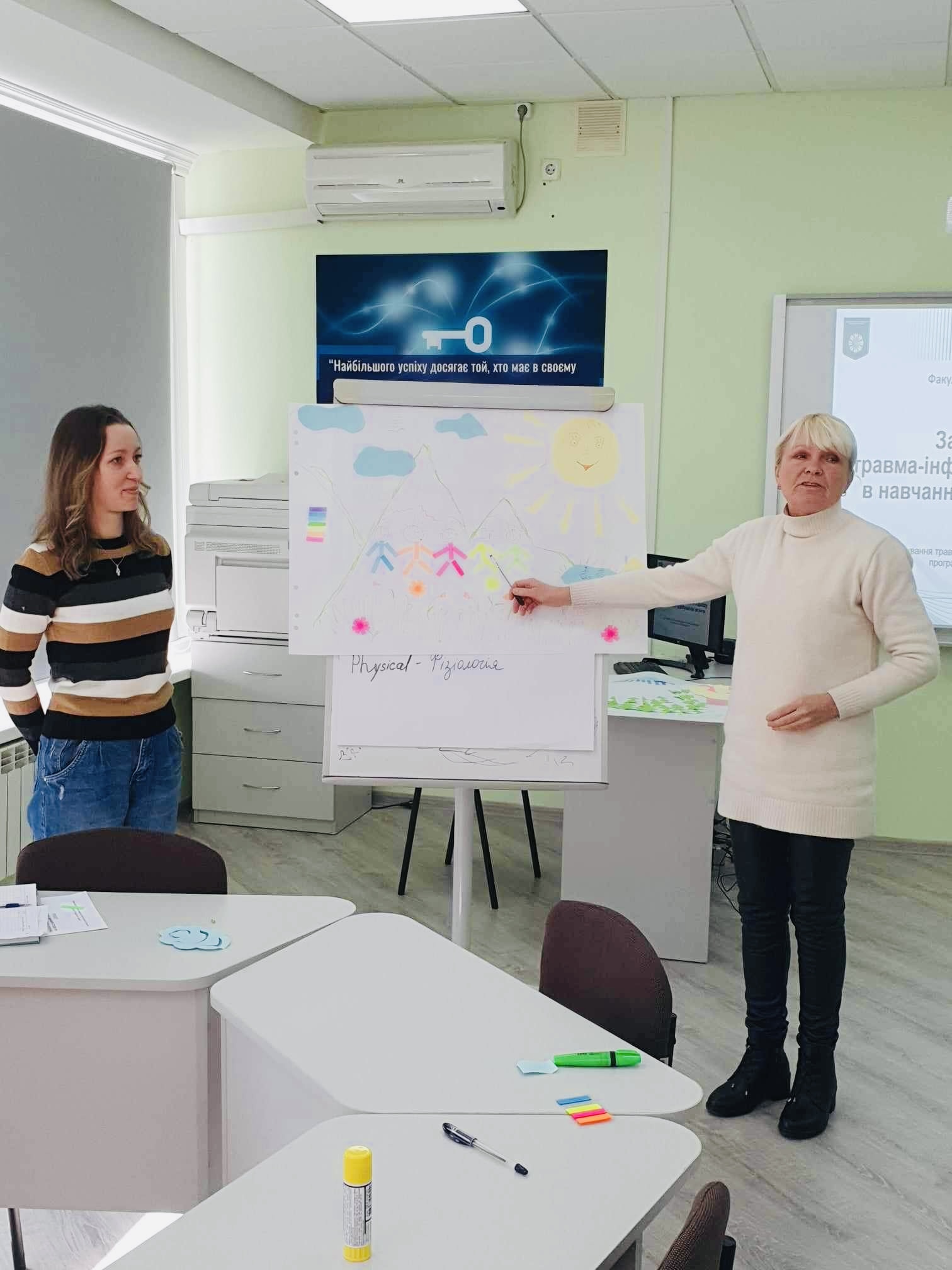 У перебігу тренінгових сесій учасники ділилися досвідом роботи зі студентами, які мають травматичний досвід, вивчали перспективні практики та розмірковували над власною роллю травма-інформованого викладача у сучасному світі.