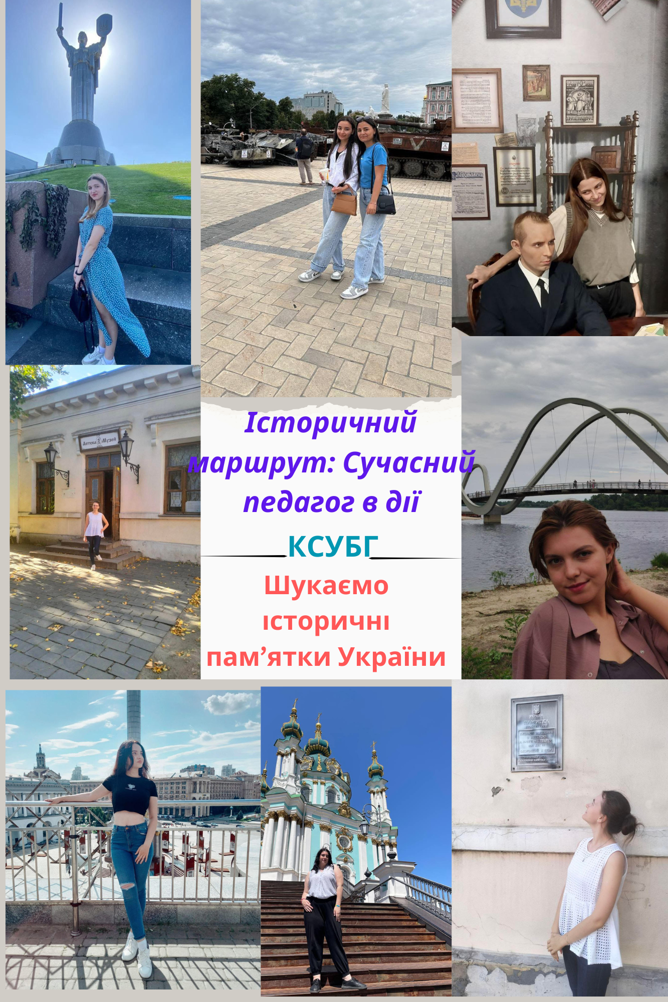 У перебігу історичного екскурсу "Козацькому роду нема переводу" студенти спеціальності “Початкова освіта” разом з кураторами Роксоланою Шпіцею, Наталією Семеній та Олександрою Шкуренко відвідали Музей історії міста Києва, де ознайомилися із взірцями української культурної спадщини. Здобувачі освіти дізнались цікаві факти про відомих українських діячів. Ще одним заходом, який провели куратори, став унікальний флешмоб під назвою «Історичний маршрут: "Сучасний педагог в дії"». В рамках флешмобу студенти відвідали визначні культурні місця України, де зробили тематичні фотознімки. Серед обраних локацій: історичні пам’ятки, музеї, театри та інші культурні осередки, що уособлюють значення освіти та збереження національної спадщини. Флешмоб став прикладом того, як через національну культуру можна ефективно популяризувати українську спадщину серед молоді.
