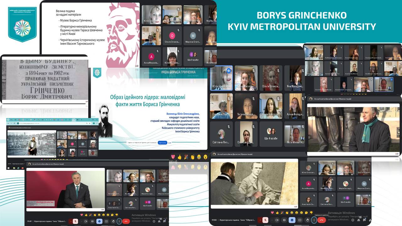 Кураторська година “Образ ідейного лідера: маловідомі факти життя Бориса Грінченка", яку підготувала та провела зі студентами спеціальності "Дошкільна освіта" куратор Юлія Волинець, була присвячена історії створення Київського столичного університету імені Бориса Грінченка. Пізнавальним та наповненим цікавими фактами для роздумів та обговорень став для студентів відео проєкт Мар'яни Ангелової "Інший ...инший Грінченко".