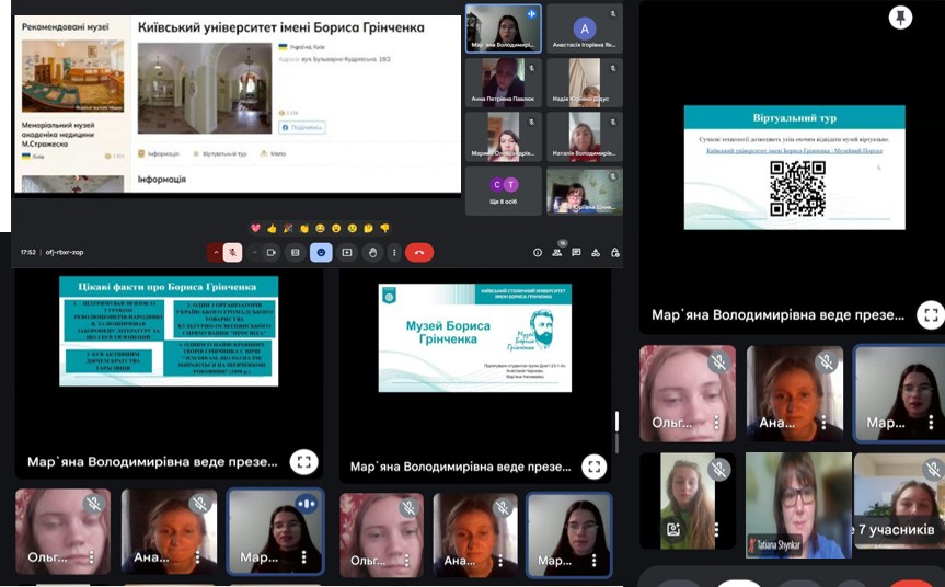 Грі стратегія «10 цікавих фактів із життя Грінченка», яку модерувала куратор Тетяна Шинкар, занурила студентів спеціальності “Дошкільна освіта” у віртуальний простір музею Бориса Грінченка. Під час ділової гри здобувачі освіти визначали шляхи доступу та джерела достовірної інформації, вчились домовлятись і узгоджувати дії для досягнення спільної мети.