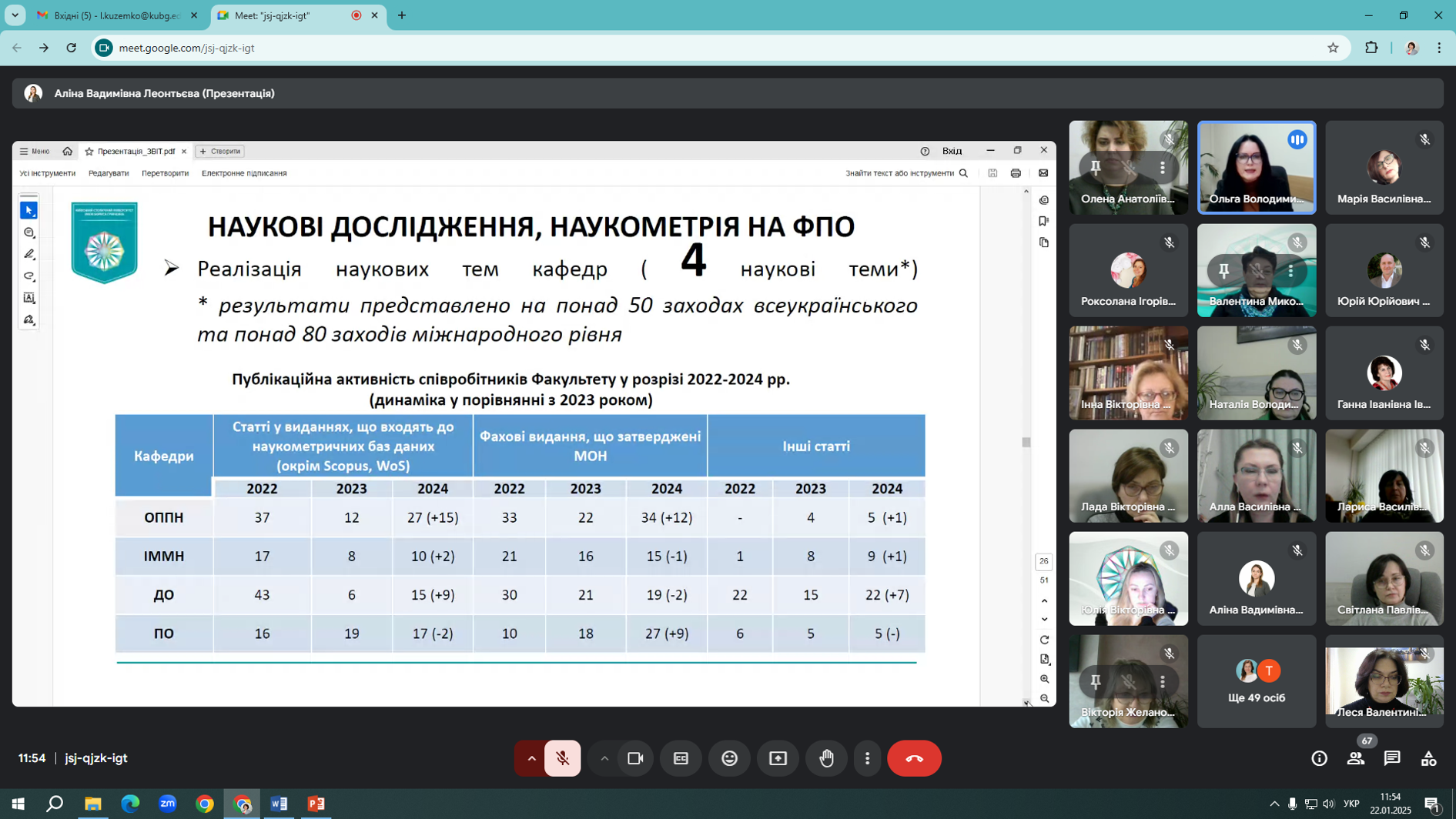 22 січня 2025 року на Факультеті педагогічної освіти відбулися Збори трудового колективу у дистанційному форматі. Учасниками Зборів стали науково-педагогічні, педагогічні та інші працівники Факультету, а також представники студентства (всього 65 осіб із 65, що складає 100 % делегованих). На Зборах була присутня Шлапак Алла Василівна, доктор економічних наук, доцент, проректор з науково-педагогічної роботи та інноваційного розвитку Київського столичного університету імені Бориса Грінченка.