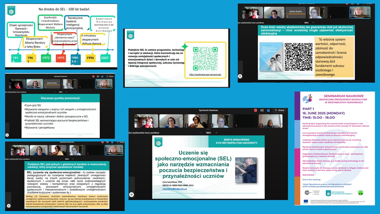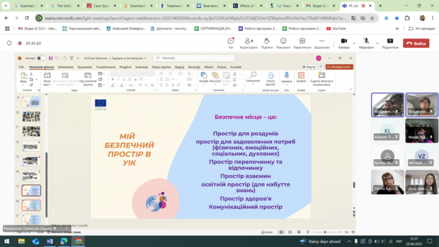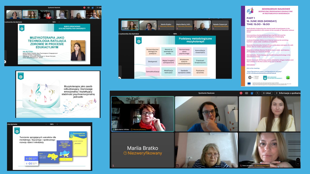 16–18 червня 2025 року в межах стажування відбувся міжнародний науковий семінар «Безпечне освітнє середовище в нестабільних умовах». Учасники обговорили низку актуальних тем, зокрема: підтримку психічного здоров’я в освітньому процесі; соціально-емоційне навчання та інтеркультурні підходи до формування безпечного середовища; роль музичної терапії у роботі з травмою; адаптацію дітей і батьків після евакуації; архітектуру простору як елемент безпеки у школі. З доповідями виступили такі представники кафедри: