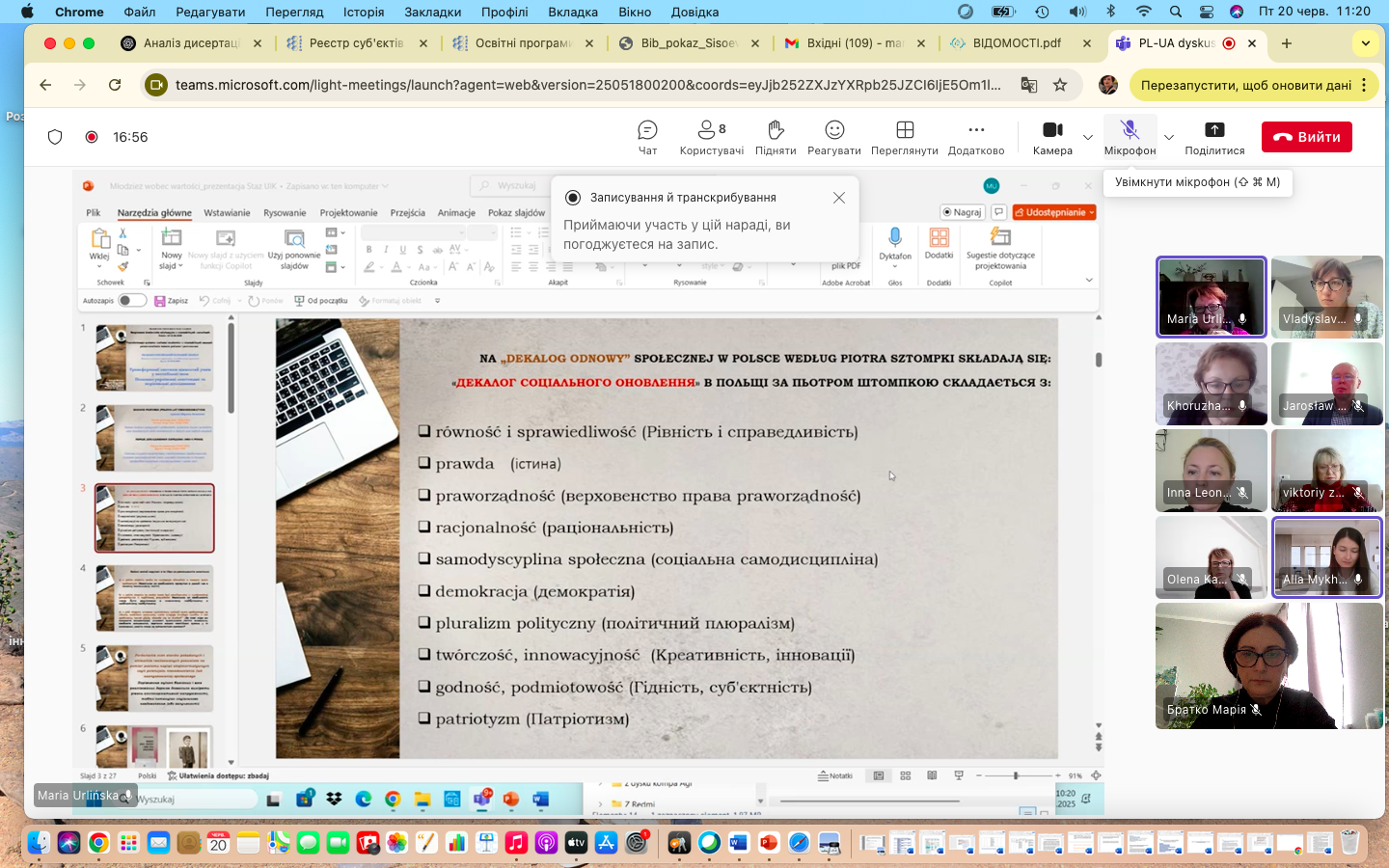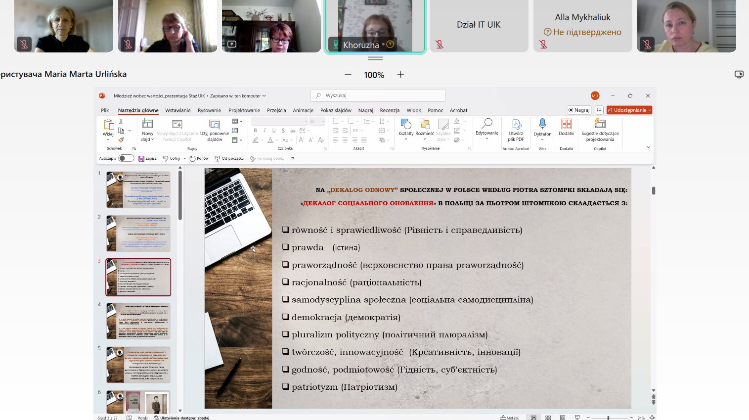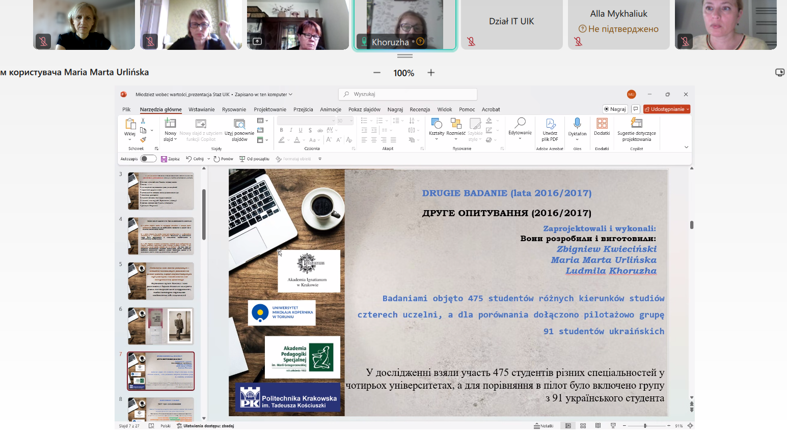 Окремий день був присвячений дискусії з методології дослідження молоді в контексті цінностей. Обговорювалися емпіричні дослідження 1980-х років під керівництвом професора Збігнєва Квєцінського та сучасні підходи до вивчення трансформації ціннісних орієнтирів у нестабільні періоди суспільного розвитку.