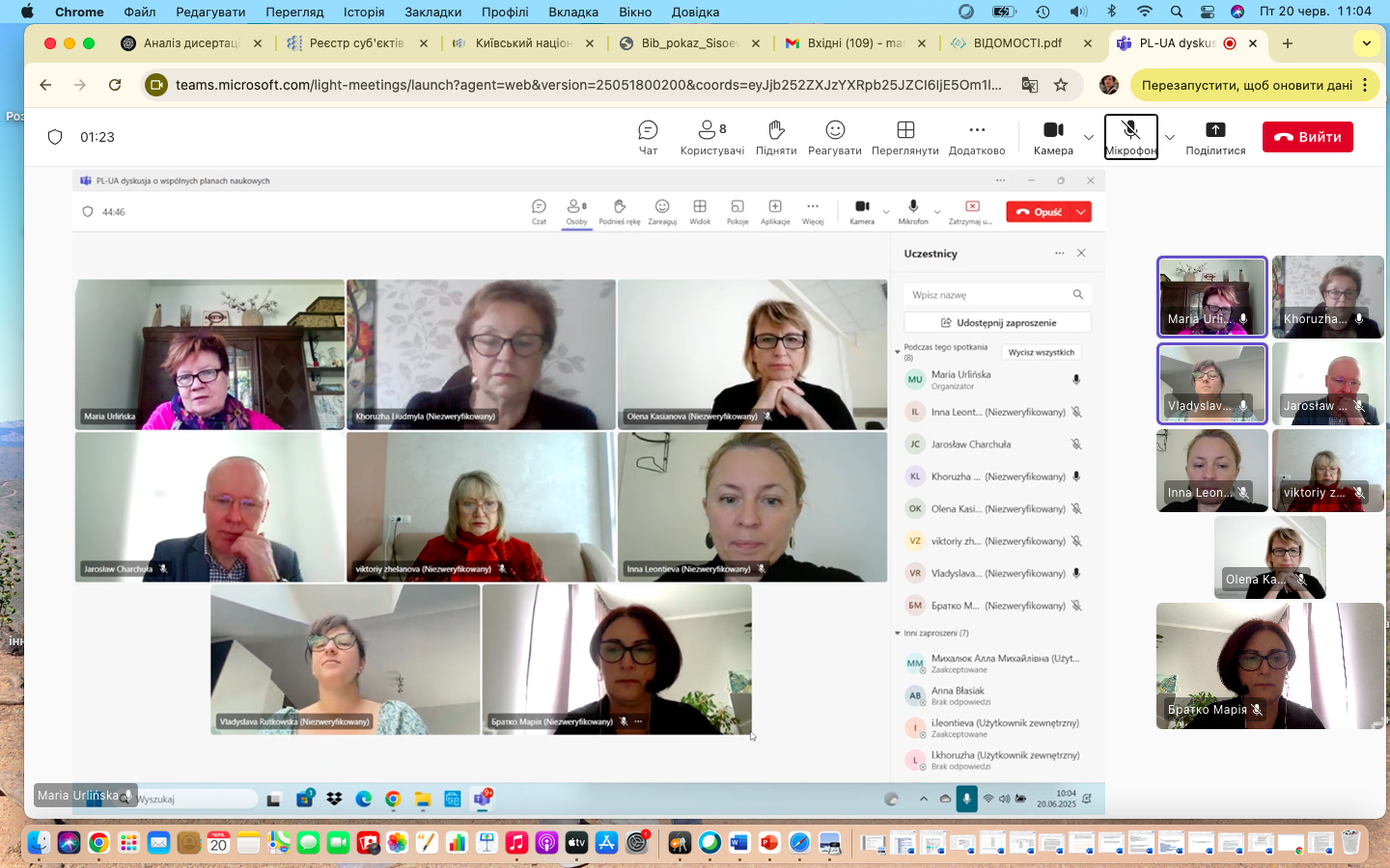 - наукова кооперація (спільні проєкти, публікації, конференції);
