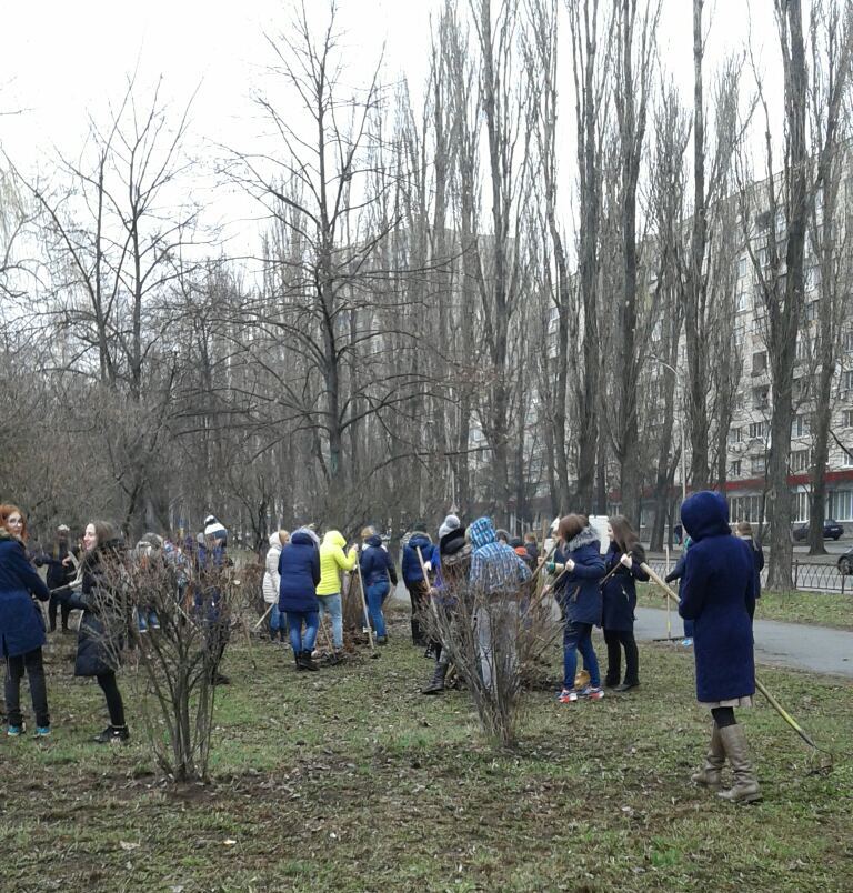 24 березня 2016 року студенти І курсу Педагогічного інституту Київського університету імені Бориса Грінченка напряму підготовки «Початкова освіта» долучилися до проведення весняного двомісячника з благоустрою, озеленення та поліпшення санітарного стану району у 2016 році на території парку Русанівської набережної, організованого комунальним підприємством по утриманню зелених насаджень Дніпровського району.