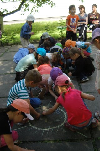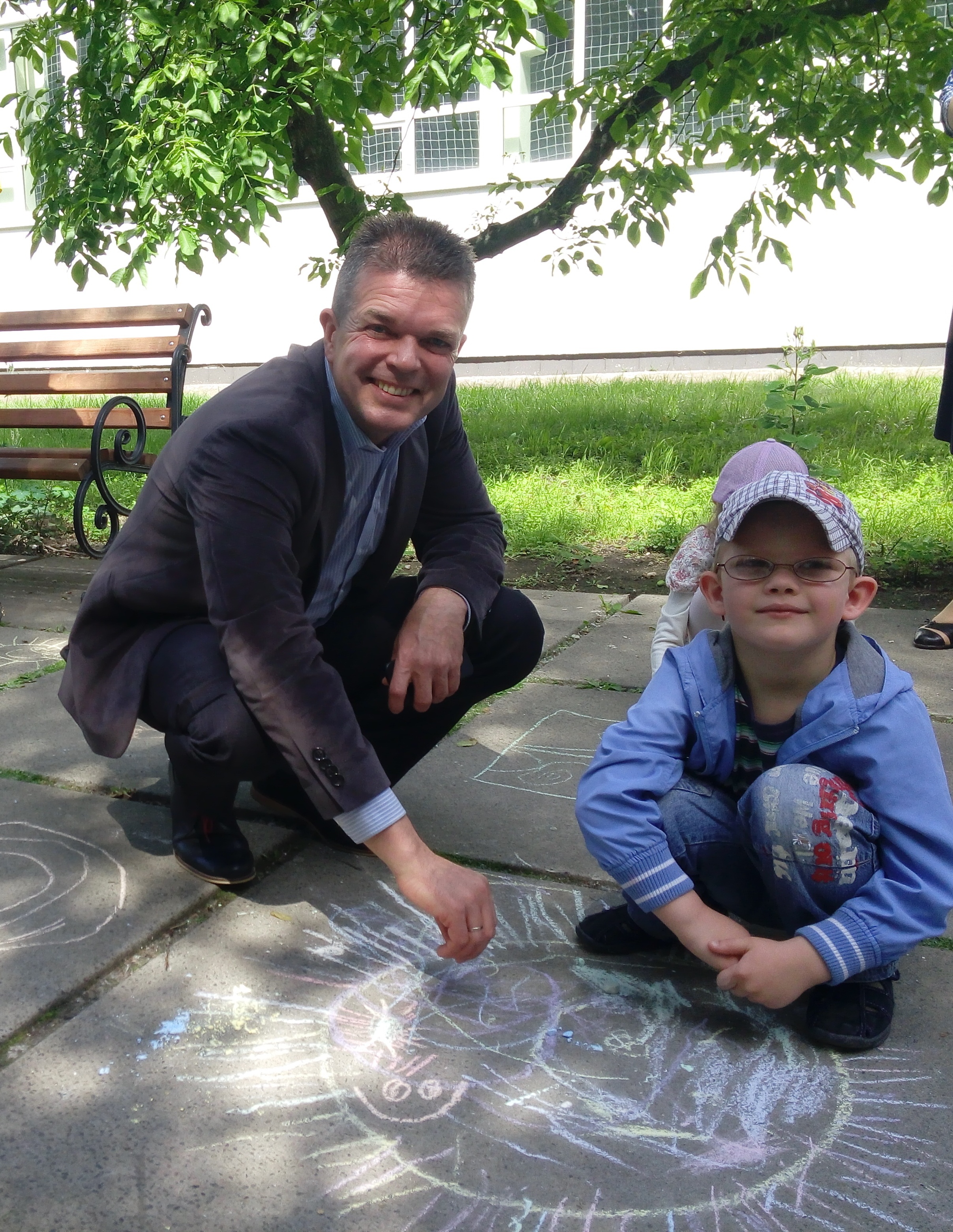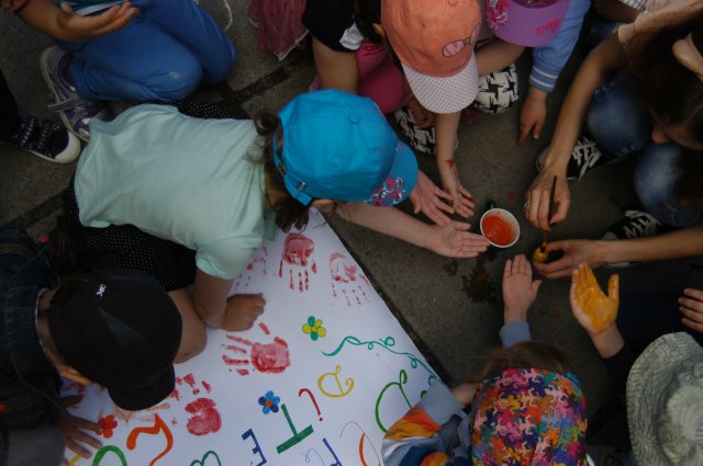 Традиційно малюки залишили сонячні подарунки нашому Університету – алея біля входу квітне дитячими малюнками, а щасливі дитячі долоньки розмалювали плакат до свята, що зараз прикрашає стіни їх садочка!