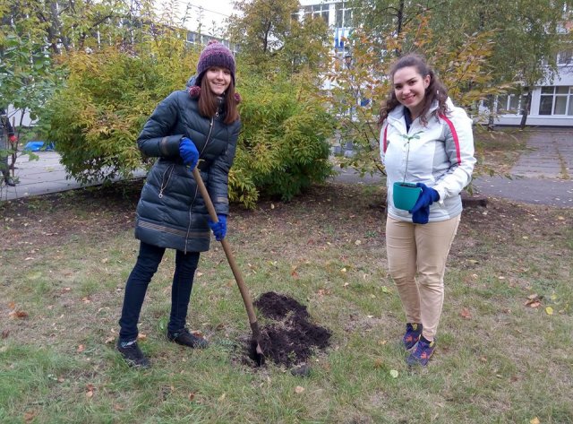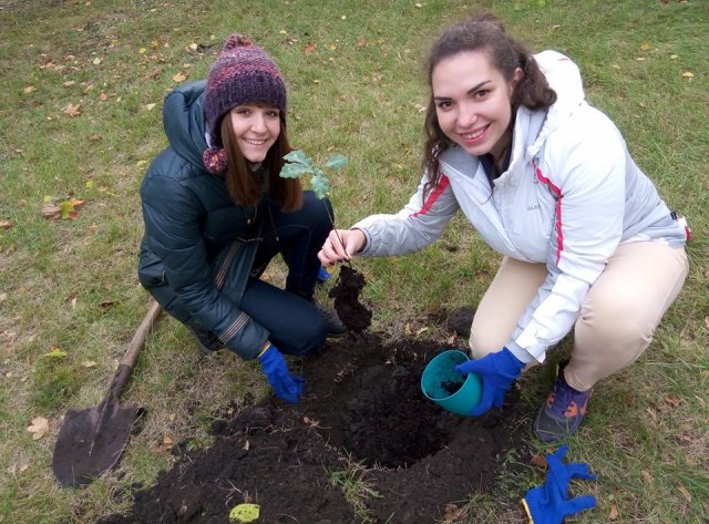 22 жовтня 2016 року студенти і співробітники Педагогічного інституту під керівництвом Савченка Юрія Юрійовича – заступника директора з науково-педагогічної і соціально-гуманітарної роботи – провели суботник: привезли машину чорнозему, висадили близько 500 цибулин 14 сортів тюльпанів, змонтували арку для троянд, пересадили паросток дубочка, вирощеного з жолудя, взятого в Олешні від дуба Софії Русової!!!