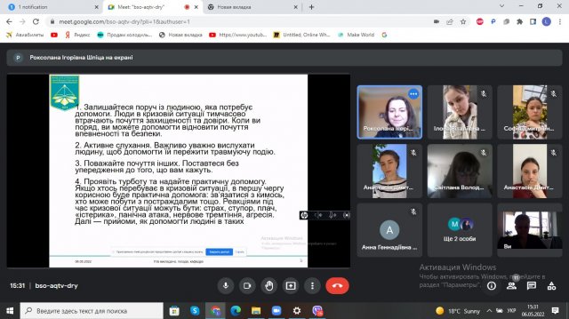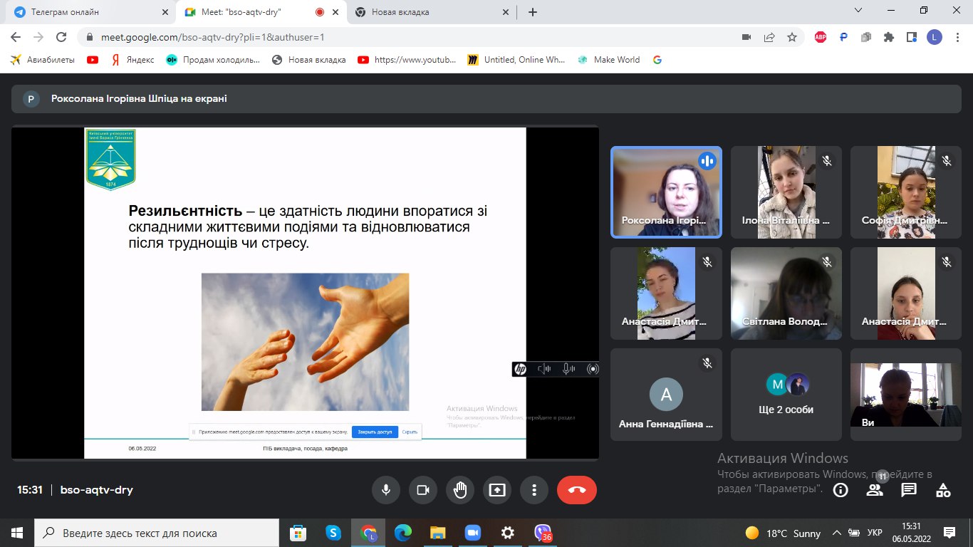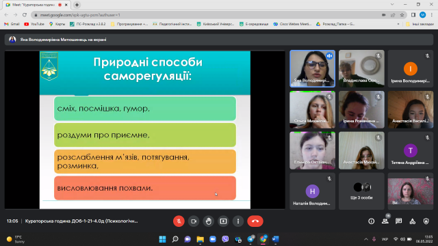 - «Емоційна стабільність студента. Техніки саморегуляції в умовах воєнного стану»;