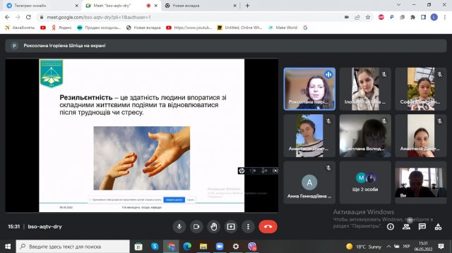 - «Психологічна стійкість у сучасних реаліях»;