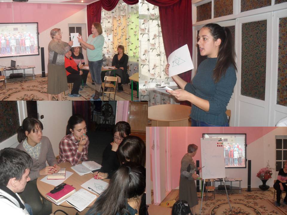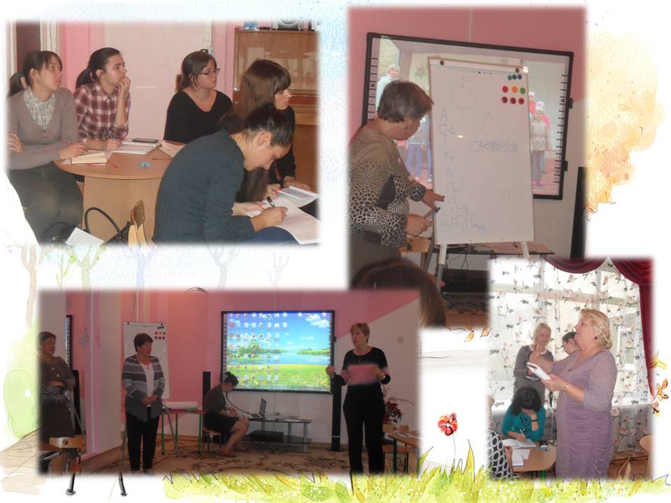 На семінарі через участь в різноманітних інтерактивних формах методисти дитячих садочків району виконували термінологічний аналіз понять «базові особистісні якості», «життєва компетентність дошкільника», «дошкільна зрілість», «досвід» та інших, встановлювали взаємозалежні зв’язки між цими поняттями, опановували технології формування базових особистісних якостей на основі текстоцентричного підходу, розробляли педагогічні ситуації для стимулювання проявів особистісної активності дошкільників, охоче вправлялися в численних рухавках й ігрових вправах.