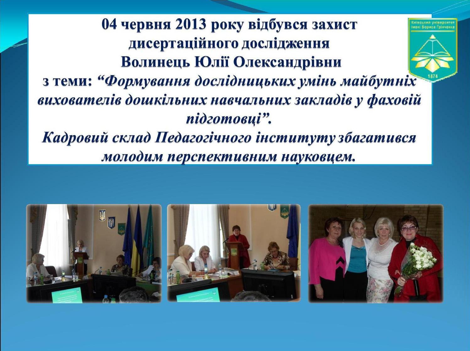 Захист дисертаційного дослідження Волинець Ю.О. 4 червня 2013 року відбувся захист дисертаційного дослідження Волинець Ю.О. Повний текст