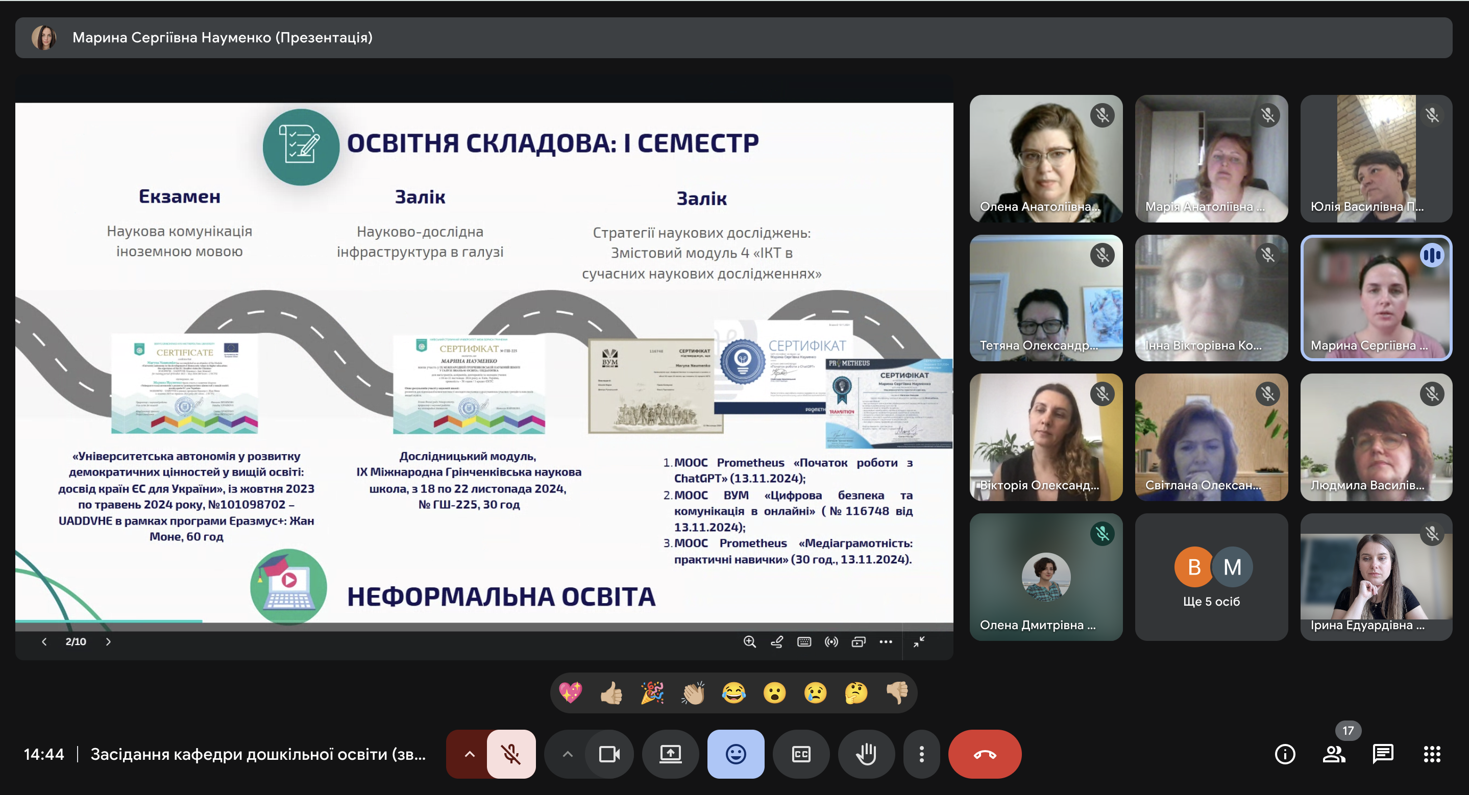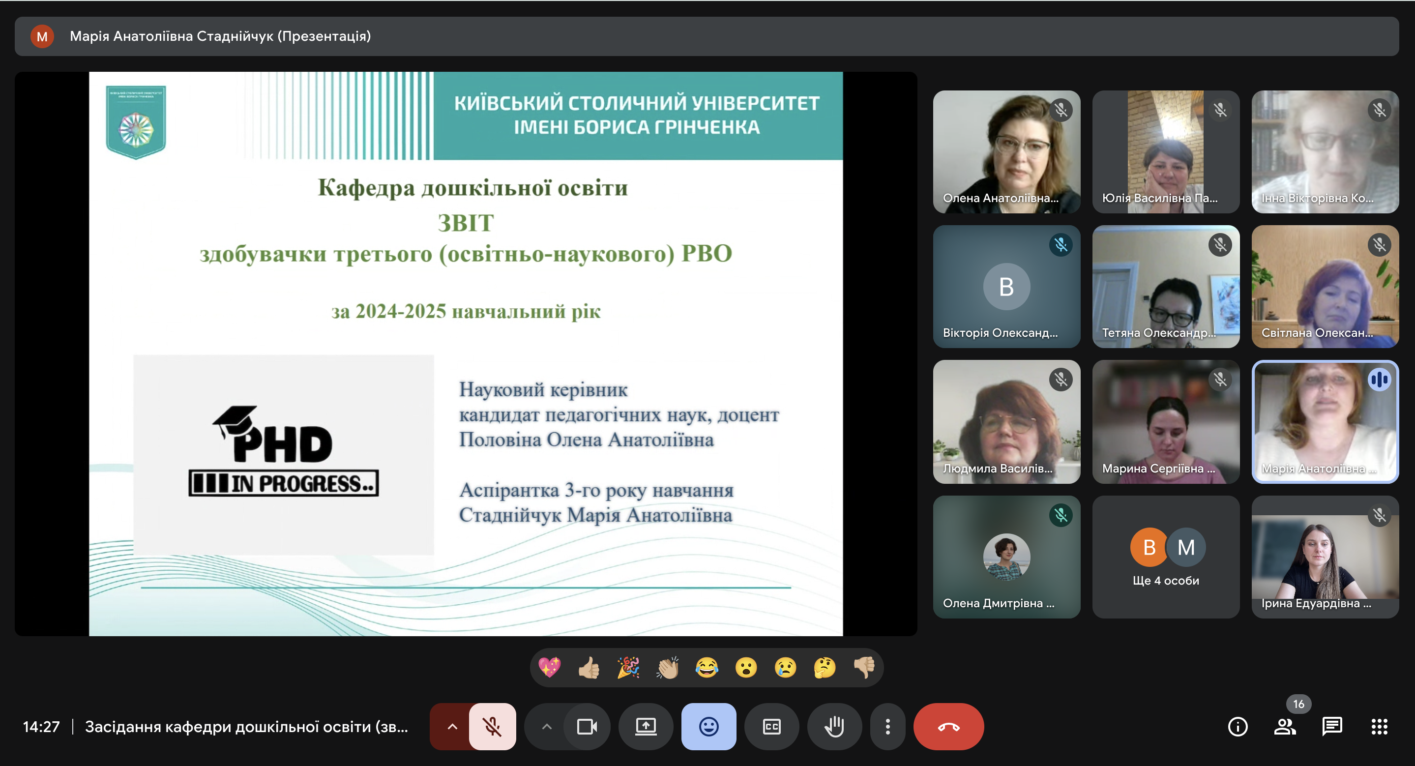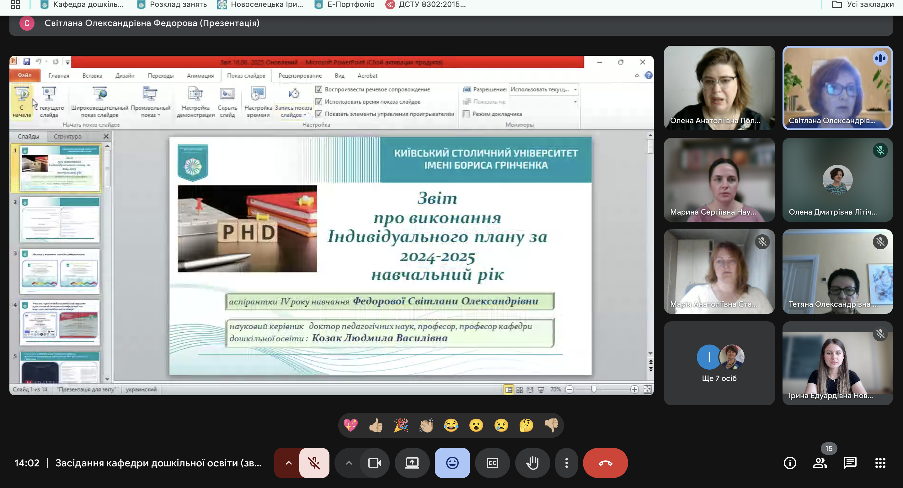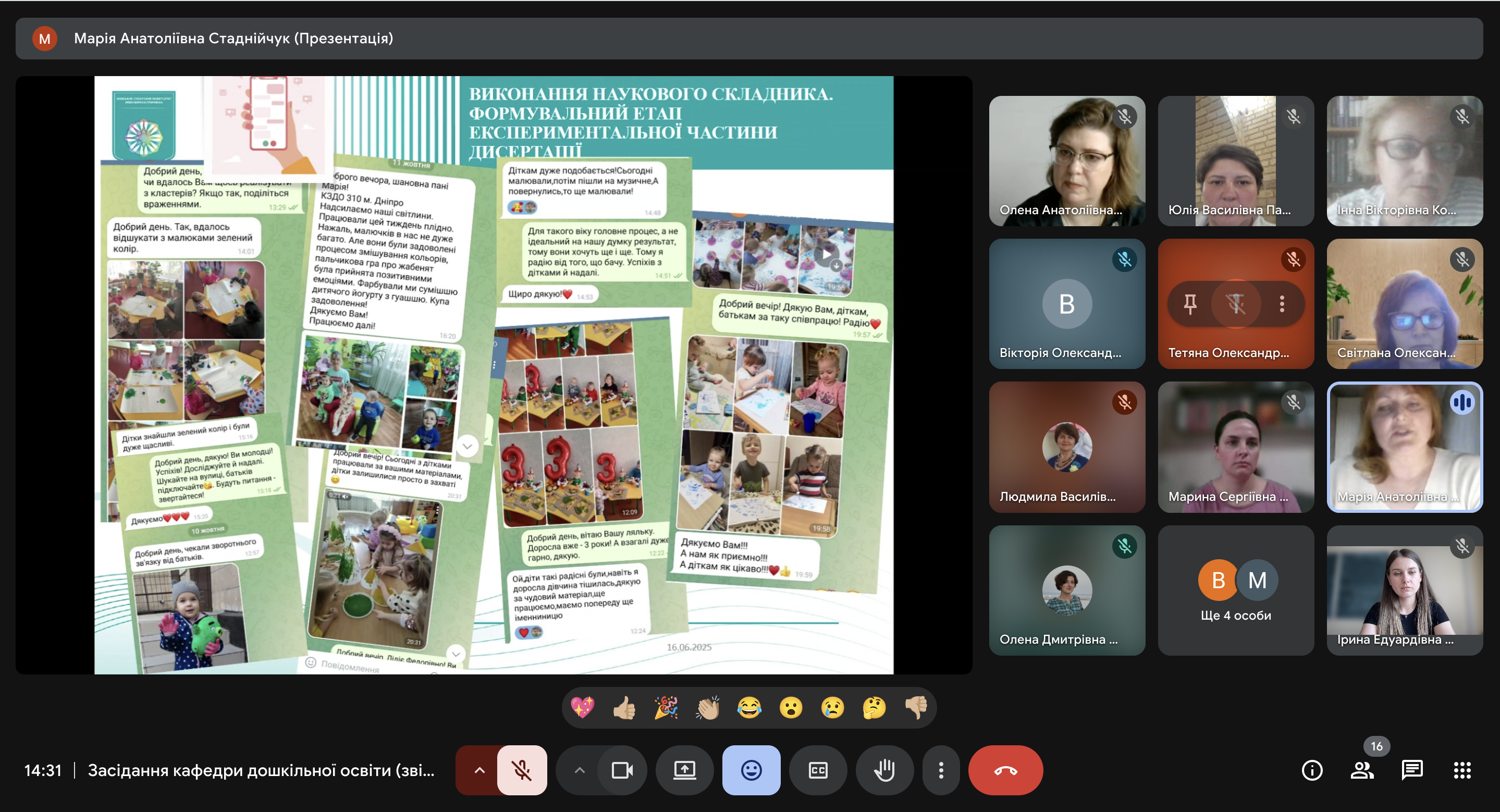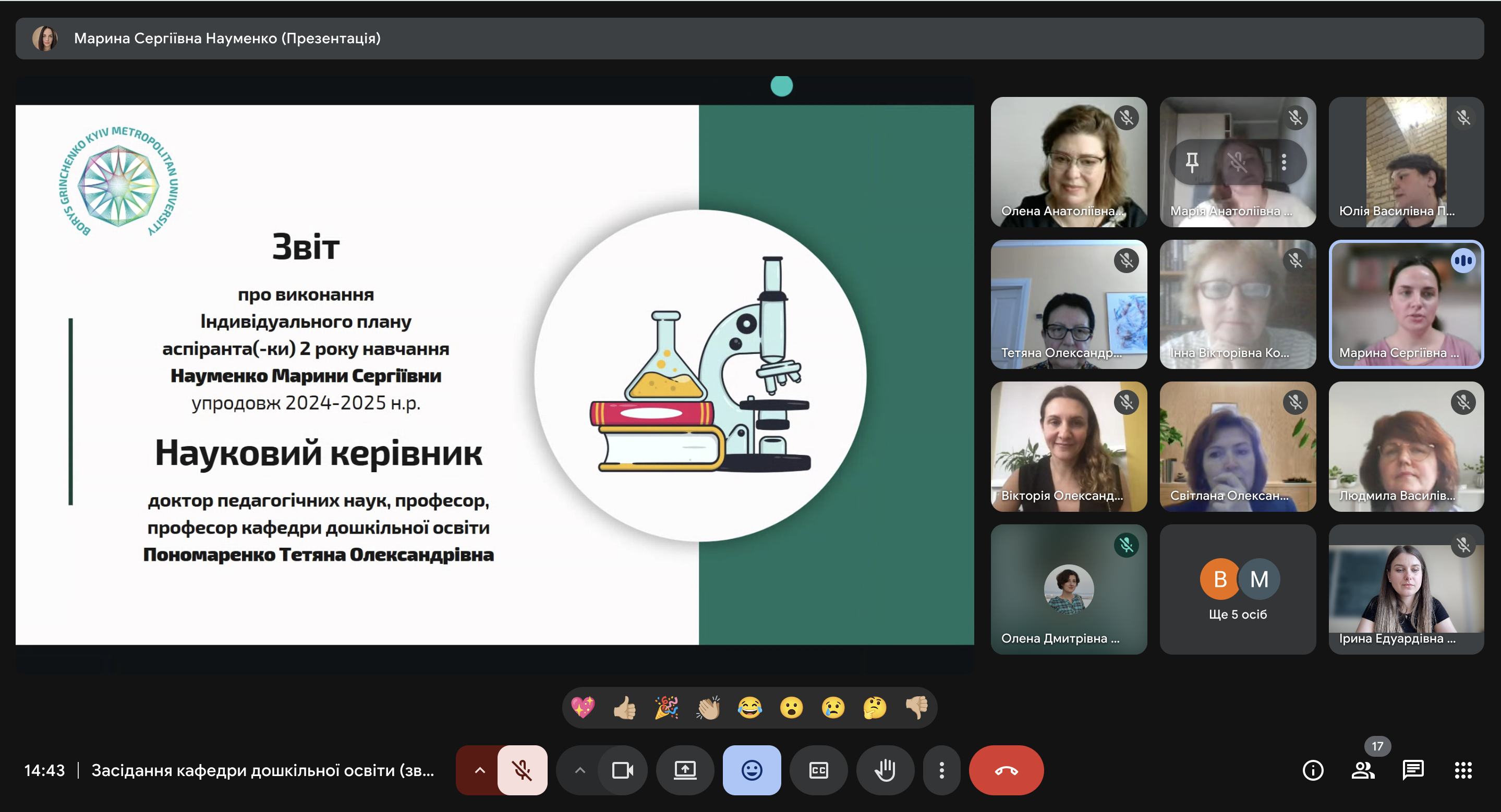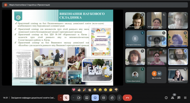 Важливим для кафедри були звіти аспірантів IV-го року навчання: Вікторії ВЮННИК (науковий керівник Олена ПОЛОВІНА, завідувач кафедри дошкільної освіти, кандидат педагогічної освіти, доцент) та Світлани ФЕДОРОВОЇ (науковий керівник Людмила КОЗАК, професор кафедри дошкільної освіти, доктор педагогічних наук, професор).