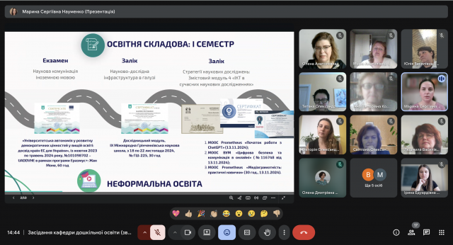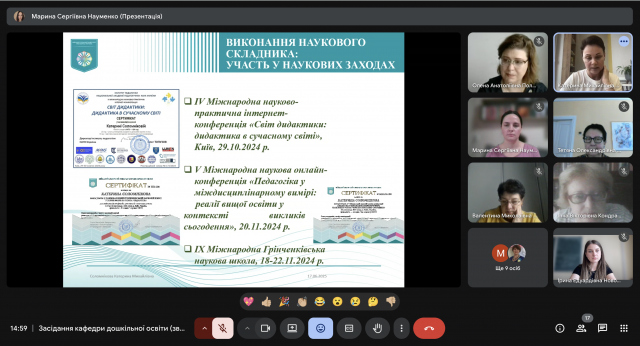 17 червня 2025 року відбулося засідання кафедри дошкільної освіти. Одним із питань порядку денного було: розгляд річних звітів здобувачів третього освітньо-наукового рівня вищої освіти спеціальності 012 Дошкільна освіта (І-й, ІІ-й, ІІІ-й, ІV-й рік навчання).