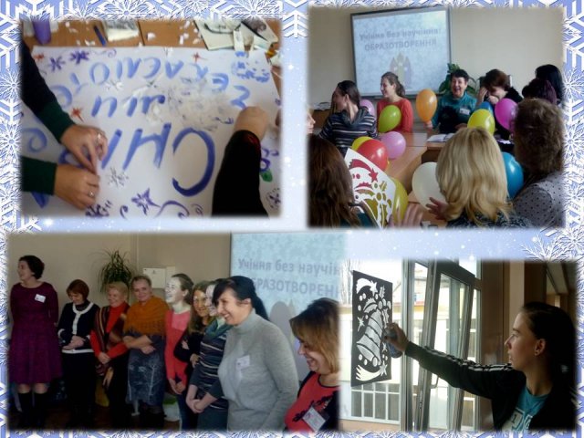 Вже втретє викладачі кафедри дошкільної освіти провели заняття в межах постійно діючого семінару для керівників методичних об’єднань Києва «Учіння без научіння: образотворення». Учасники семінару під керівництвом модераторів О.А.Половіної, О.О.Стаєнної, Л.В.Гаращенко та О.Д.Літіченко з ентузіазмом занурилися в щасливу атмосферу підготовки свята першого снігу. Чи то тому, що разом із вихователями працювали і студенти-першокурсники, чи завдяки веселим пісням, іграм і цікавому антуражу – свято відбулося!!! Воно залишило особливі відчуття наближення новорічних свят, щиру радість і душевне тепло. А крім того, зовсім непомітно для себе всі оволоділи алгоритмом створення свята з нічого, без важких і тривалих репетицій, яке просто стає для дітей і дорослих величезною спільною радістю. Дякуємо всім причетним!!!