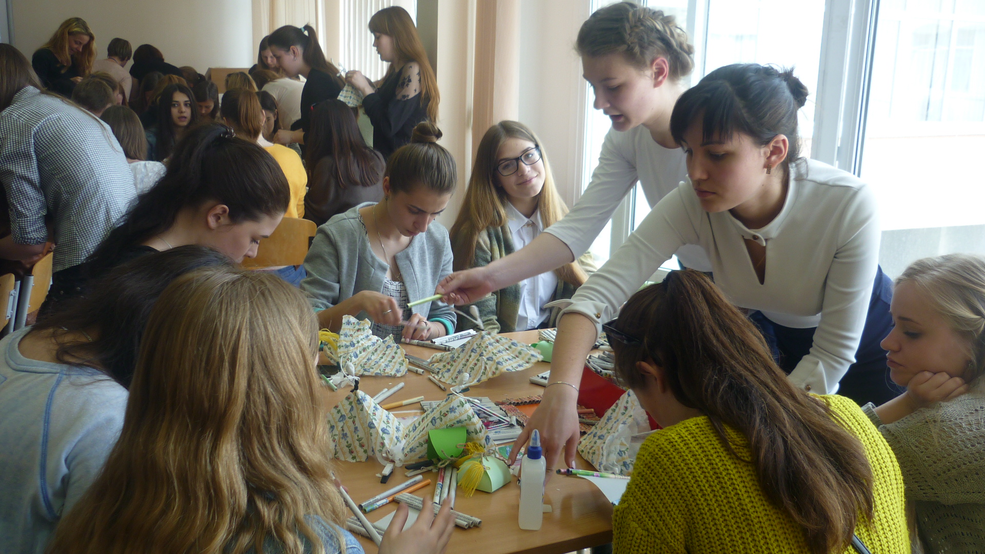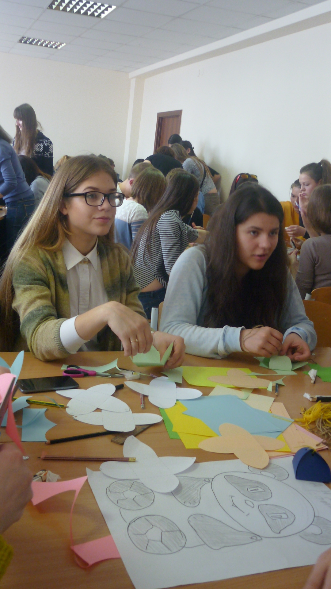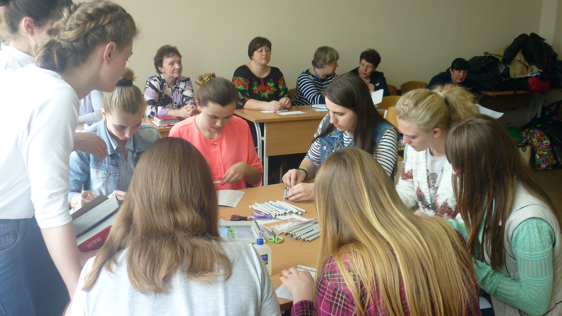 Форма організації відповідала заняттю комбінованого типу з використанням методу «Джигсо» (метод розвитку критичного мислення). На основі цього методу було організовано майстерню, в якій модераторами виступили студенти групи ДОб-2-15-4.0д. Дівчата організовували процес навчання в підгрупах, здійснювали попередню підготовку до роботи. Робота в групах, які змінювались кожні 7-8 хвилин, завершувалась виготовленням виробу кожним учасником.
