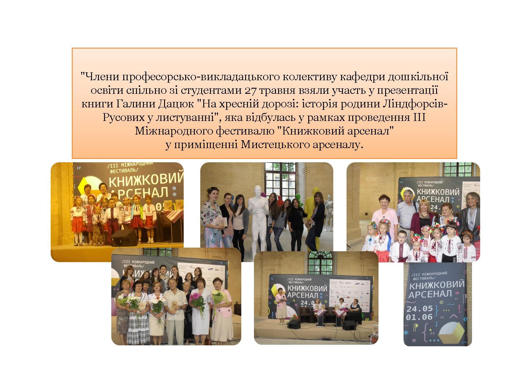 "Члени професорсько-викладацького колективу кафедри дошкільної освіти спільно зі студентами 27 травня взяли участь у презентації книги Галини Дацюк "На хресній дорозі: історія родини Ліндфорсів-Русових у листуванні".