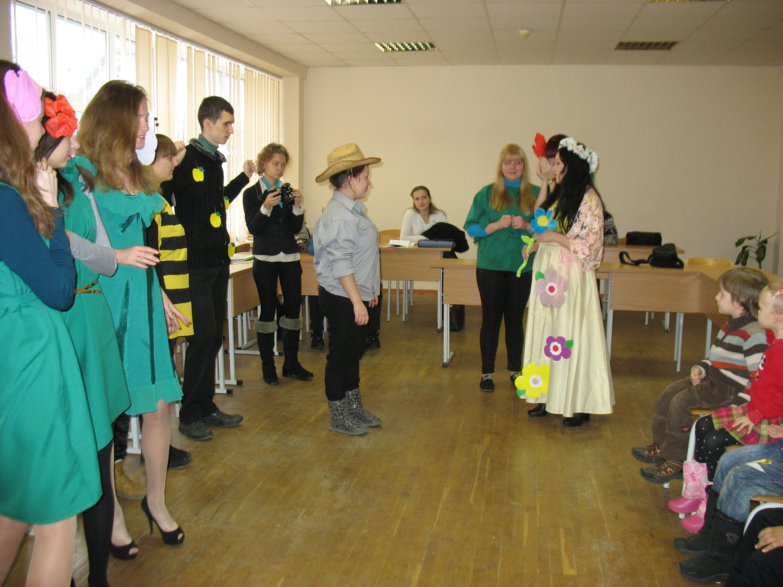 Традиційними є проведення кожної суботи занять із дітьми району у межах соціального проекту. Так і 7 грудня викладачі кафедри Сиротич Наталія та Богданець-Білоскаленко Наталія разом зі студентами 5 курсу провели заняття з математики, художньої діяльності, розвитку мовлення. Завершили виставою за твором Є. Ярошинської «Квіти».