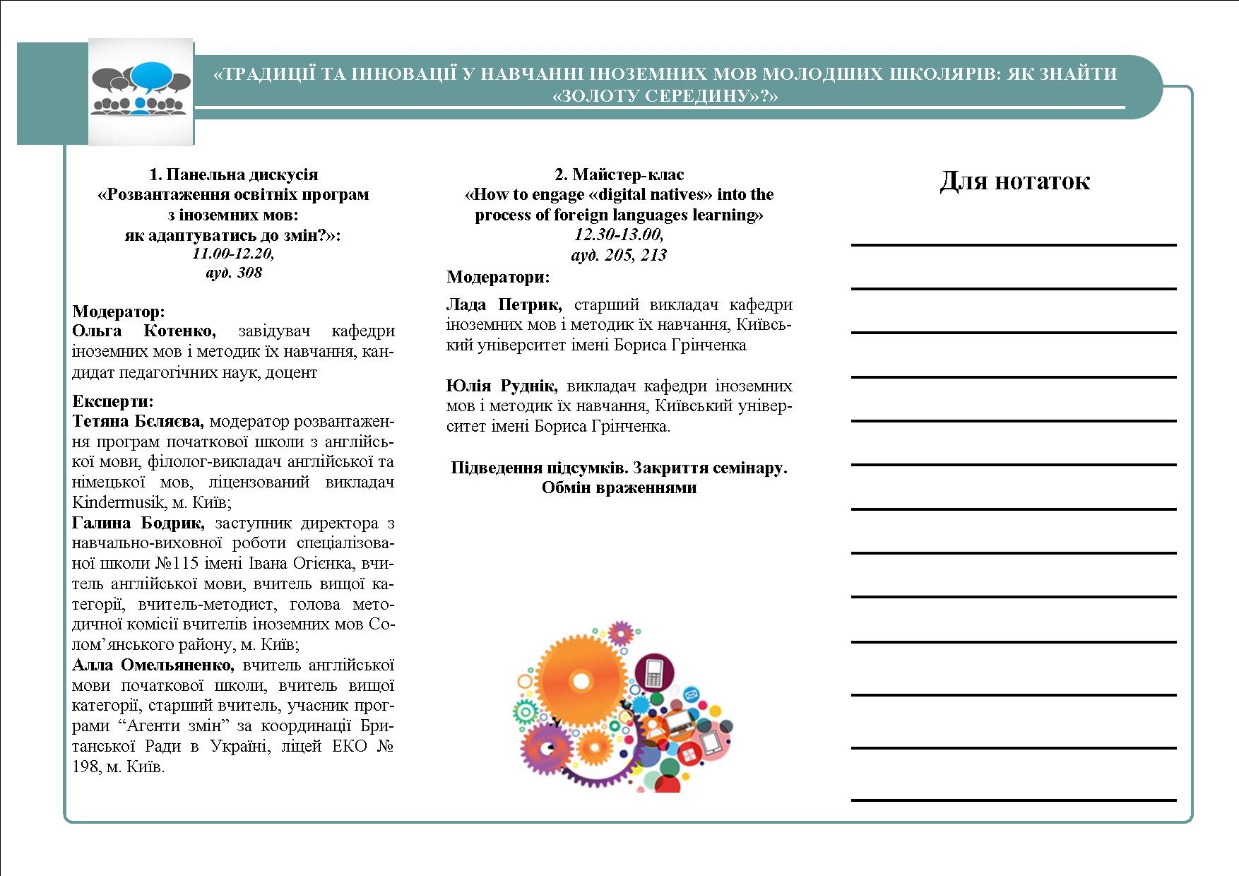 Після проведення панельної дискусії учасники семінару відвідали майстер-клас “How to engage “digital natives” into the process of foreign languages learning” (модератори: Лада Петрик, старший викладач кафедри іноземних мов і методик їх навчання, Юлія Руднік, викладач кафедри іноземних мов і методик їх навчання, Київський університет імені Бориса Грінченка). Дякуємо колегам за конструктивні думки, обмін досвідом та дружню атмосферу і запрошуємо до подальшої співпраці!!!