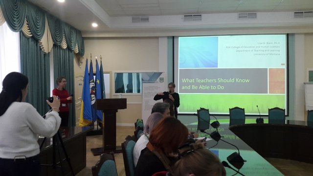 У ході семінару професор Університету Монтани (США), учасниця програми академічних обмінів імені Фулбрайта, Ліза Марі Бленк, представила досвід США щодо реалізації положень навчання, заснованого на дослідженнях на прикладі підготовки фахівців педагогічної та інших галузей. У формі інтерактивної дискусії з учасниками семінару Ліза Марі Бленк визначила можливості застосування навчання, заснованого на дослідженнях у контексті української освітньої системи, наголосивши на їх цінності, результативності та доцільності, а також визначивши пов’язані з цим ризики.