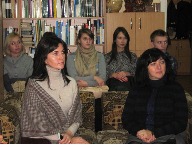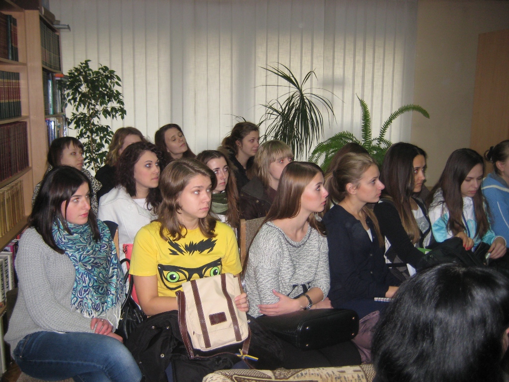 30.10.2014 р. студенти напряму підготовки "Початкова освіта" (ПОб 1-14-2.0д, ПОб 4-14-4.0д) разом із викладачами кафедри іноземних мов і методик їх навчання О. В. Котенко, І. П. Сінельник, Ю. В. Руднік взяли участь у читацькій конференції «Перекладацькі методики», що відбулась у відділі літератури іноземними мовами Публічної бібліотеки ім. Лесі Українки міста Києва. У ході конференції студенти зустрілись з професором, доктором філологічних наук, автором багатьох підручників з питань перекладу Геннадієм Едуардовичем Мірамом, який виступив з доповіддю "Герменевтичний та інструментальний підходи до перекладу". Директор бібліотеки О. В. Мар’янчик провела екскурсію, розповіла про бібліотечний фонд та запросила до подальшої співпраці.