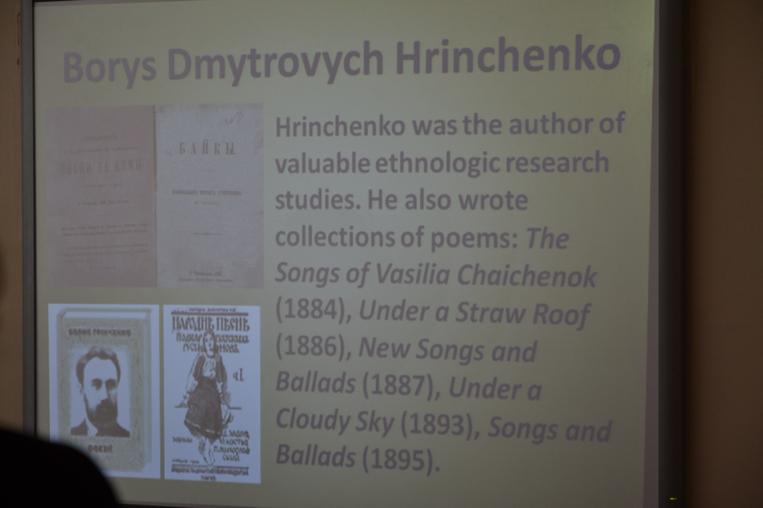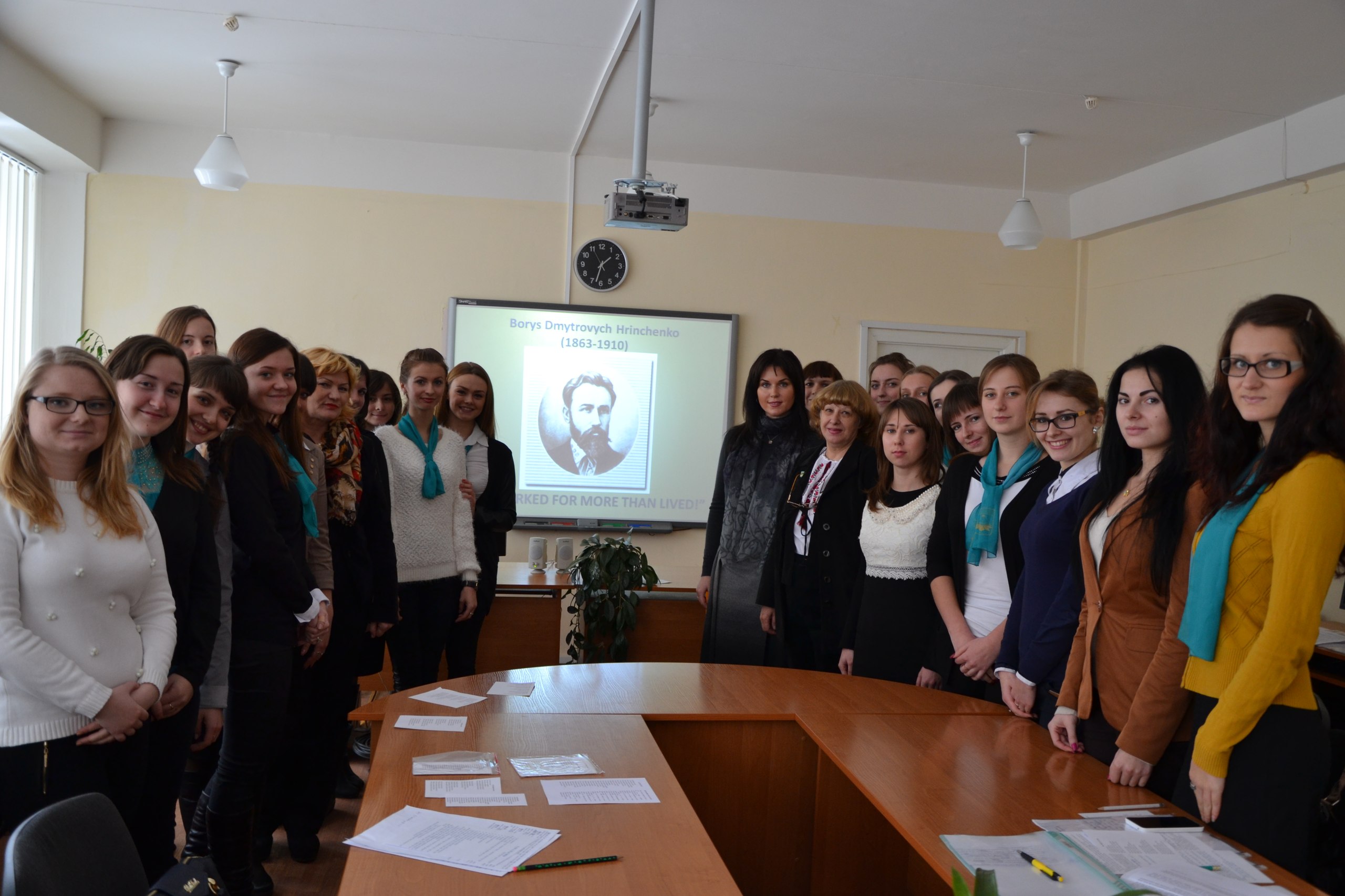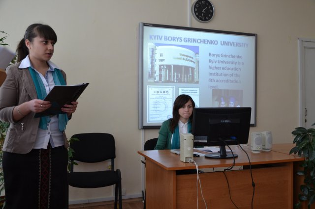 On December 3, 2014 in the Pedagogical Institute, as a part of Borys Hrinchenko decade in Kyiv Borys Hrinchenko University, there was held a literary session on “He worked more than lived”, dedicated to 151st anniversary of the birth of the prominent public figure, writer, publicist, teacher, lexicographer. The purpose of the event was to popularize the works of Boris Hrinchenko and spread the information about this outstanding figure in English-language sites. Bright presentations and performances in English depicting Borys Hrinchenko’s paths of life and creative activity which were prepared by the fourth-year students specialized in “Primary school education”, which emphasized the universality and modernity of the outstanding educator’s pedagogical ideas.