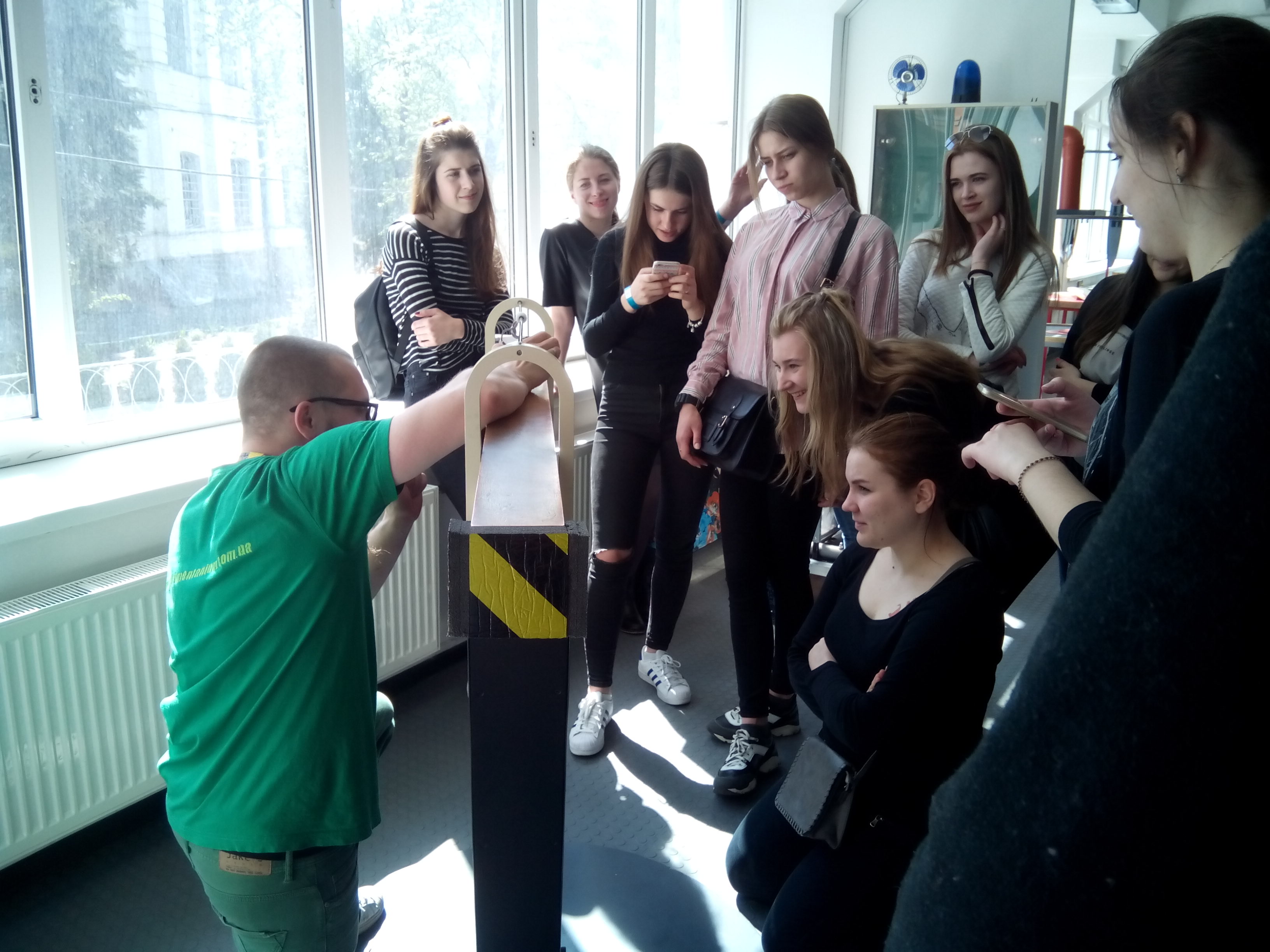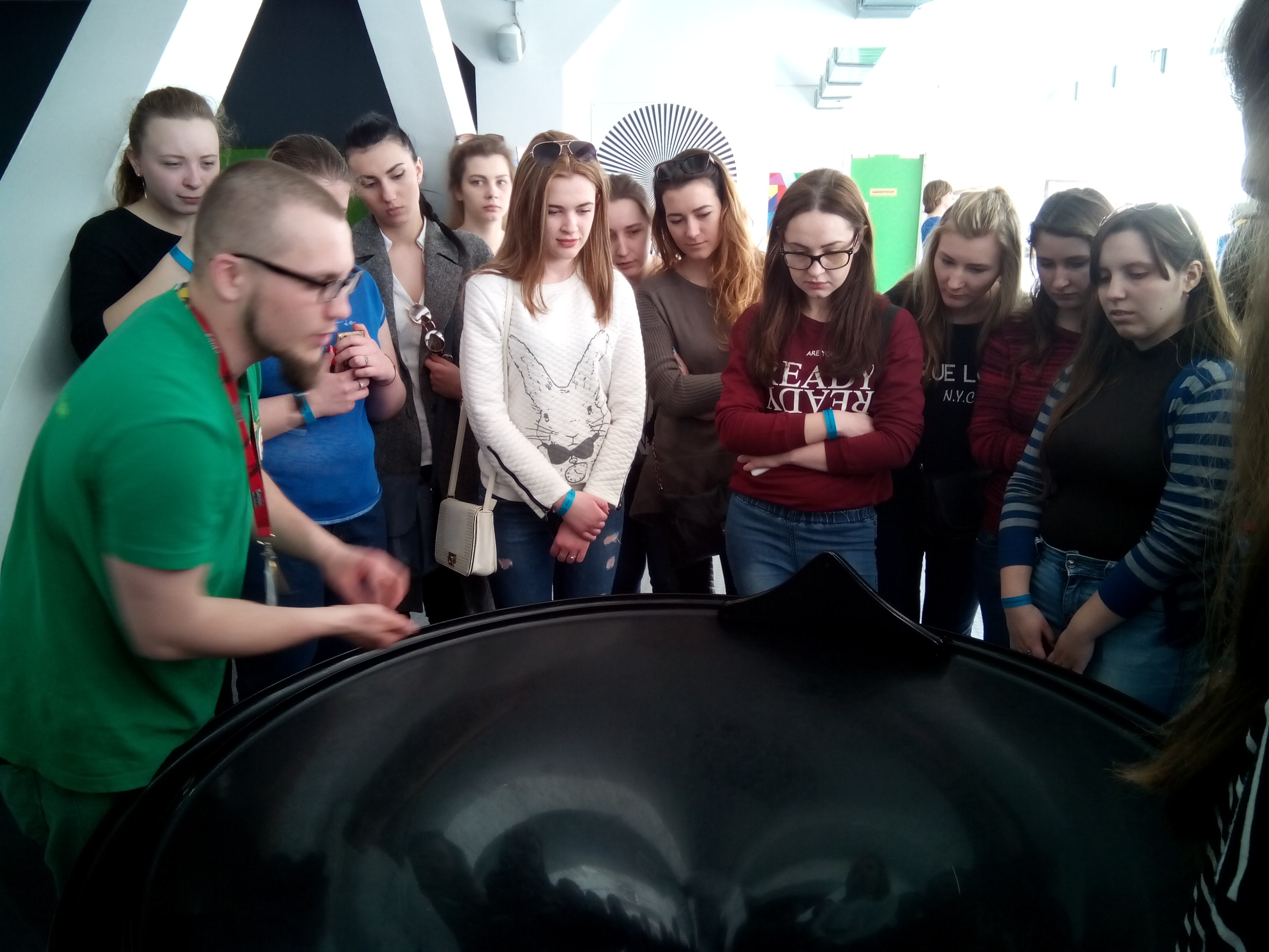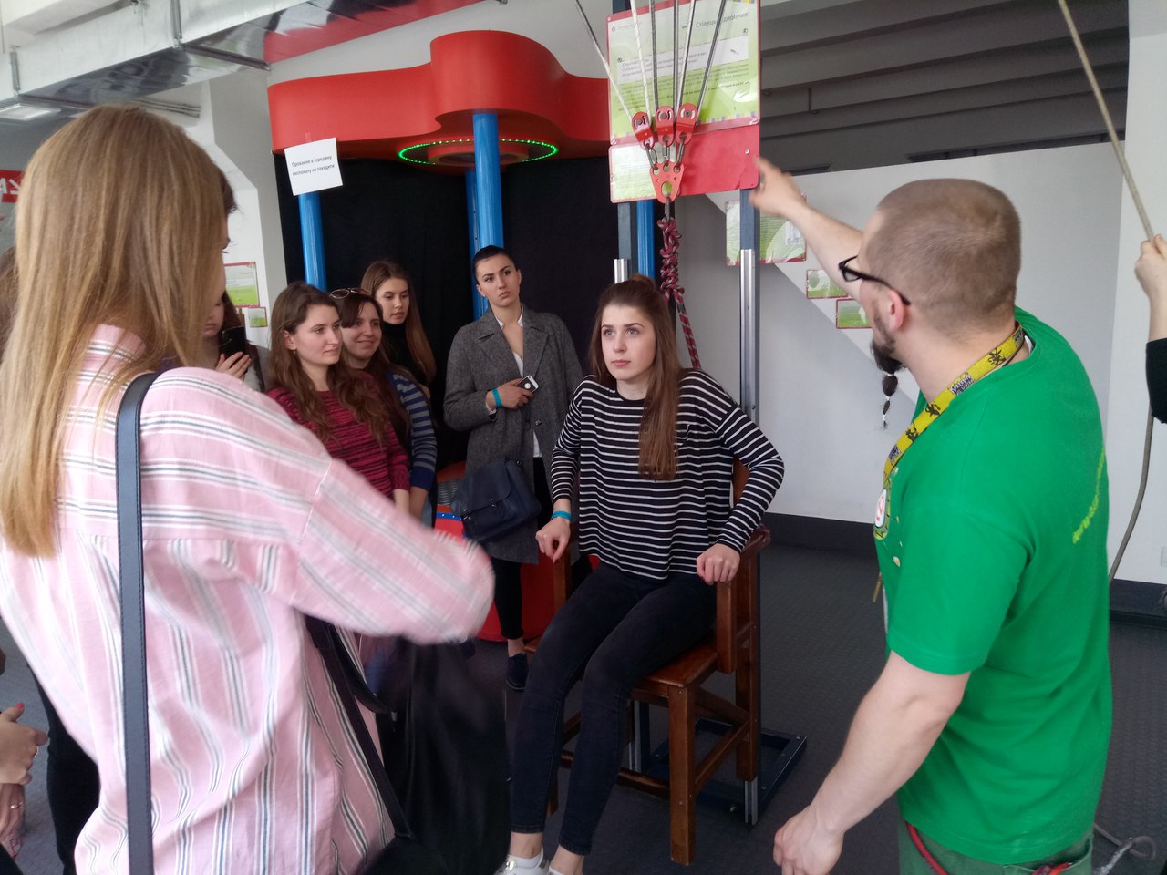 11 квітня 2017 року у межах вивчення теми «Visiting museums. Kinds of museums (Відвідування музеїв. Види музеїв)» студенти груп Поб-1-16-2.0д та Поб-2-16-2.0д (ІІІ курс, ОКР «бакалавр», напрям підготовки «Початкова освіта») під керівництвом викладачів кафедри іноземних мов і методик їх навчання Котенко Ольги Володимирівни, Лабунець Юлії Олегівни та Плужник Ірини Володимирівни відвідали англомовну екскурсію на тему «Masterpieces of Modern Science Museums (Шедеври сучасних наукових музеїв)», яка проводилась у музеї популярної науки і техніки «Експериментаніум».