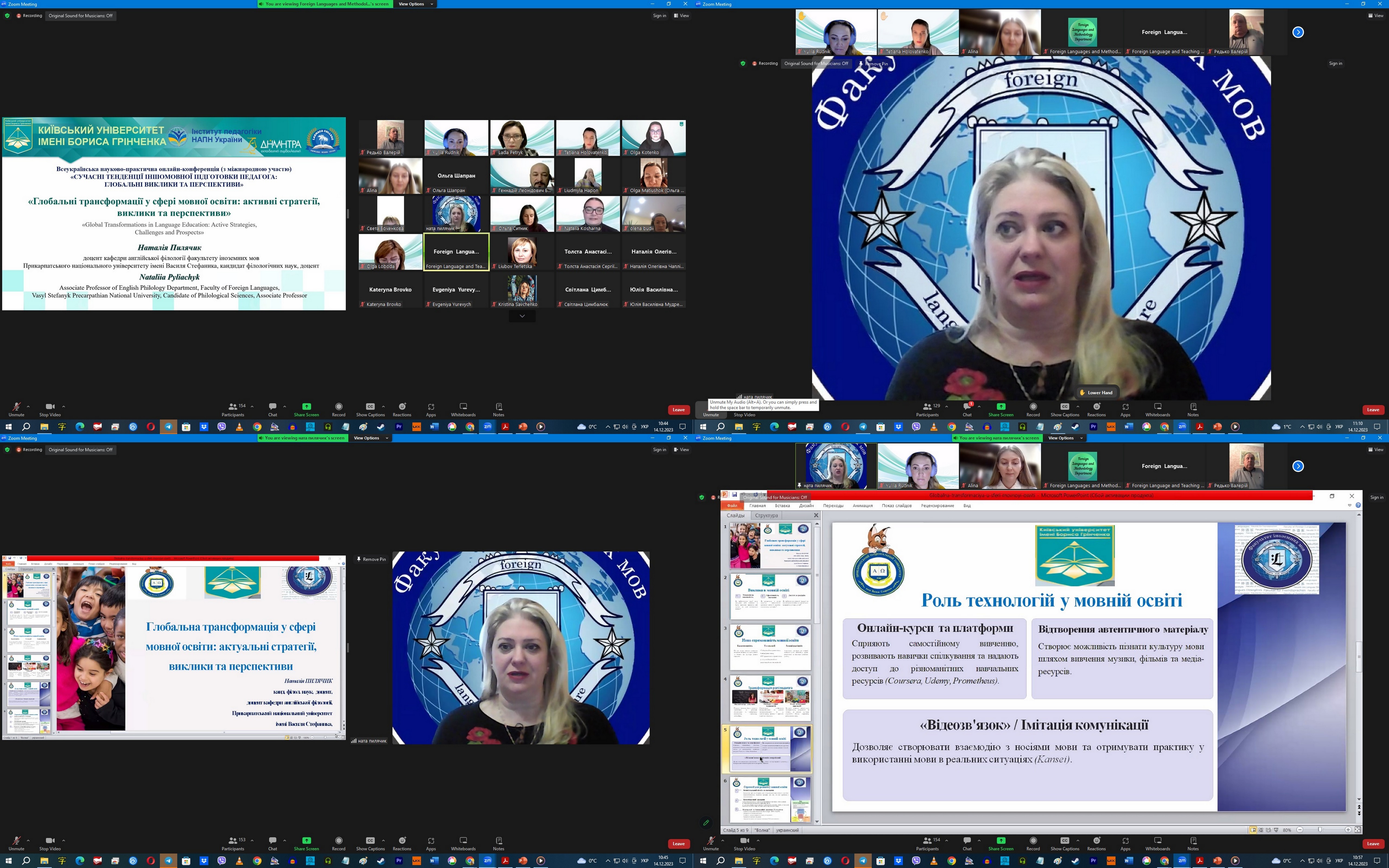 Конференція була проведена в системі онлайн-конференцій Zoom. Під час конференції працювали: пленарне засідання конференції «Сучасні тенденції іншомовної підготовки педагога: глобальні виклики та перспективи» (модератор – Наталія Кошарна, завідувач кафедри іноземних мов і методик їх навчання Факультету педагогічної освіти Київського університету імені Бориса Грінченка, кандидат педагогічних наук, доцент); перша дискусійна платформа «Іншомовна освіта як невід’ємний чинник професіоналізації сучасного педагога: соціальні та психолого-педагогічні аспекти» (модератор – Наталія Кошарна, завідувач кафедри іноземних мов і методик їх навчання Факультету педагогічної освіти Київського університету імені Бориса Грінченка, кандидат педагогічних наук, доцент); друга дискусійна платформа «Трансформація змісту та технологій іншомовної підготовки педагога в умовах війни в Україні» (модератор – Тетяна Головатенко, доцент кафедри іноземних мов і методик їх навчання Факультету педагогічної освіти Київського університету імені Бориса Грінченка, доктор філософії); третя дискусійна платформа «Модернізація іншомовної освіти педагога в контексті євроінтеграційних процесів та міжкультурної взаємодії» (модератор – Аліна Джурило, доцент кафедри іноземних мов і методик їх навчання Факультету педагогічної освіти Київського університету імені Бориса Грінченка, кандидат педагогічних наук, доцент, старший дослідник).