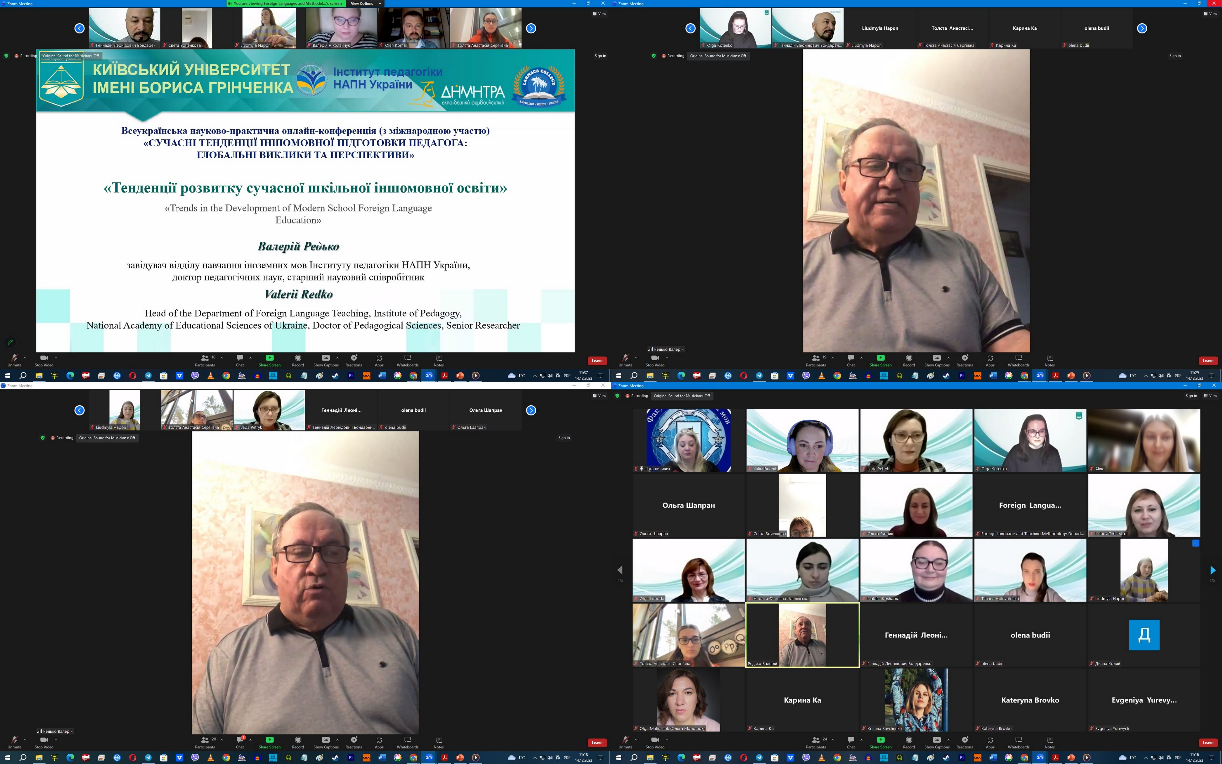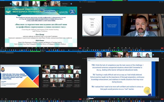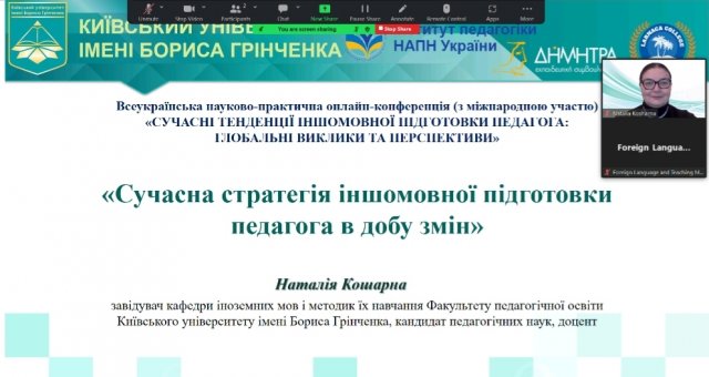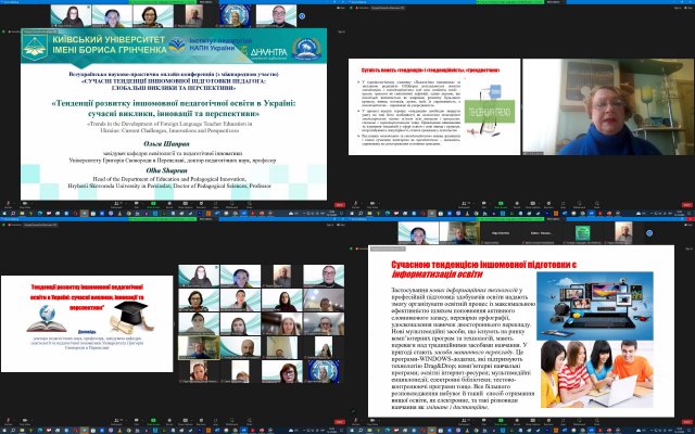 14 грудня 2023 року, на виконання Плану роботи Київського університету імені Бориса Грінченка, кафедрою іноземних мов і методик їх навчання Факультету педагогічної освіти було організовано та проведено Всеукраїнську науково-практичну онлайн-конференцію (з міжнародною участю) «СУЧАСНІ ТЕНДЕНЦІЇ ІНШОМОВНОЇ ПІДГОТОВКИ ПЕДАГОГА: ГЛОБАЛЬНІ ВИКЛИКИ ТА ПЕРСПЕКТИВИ».