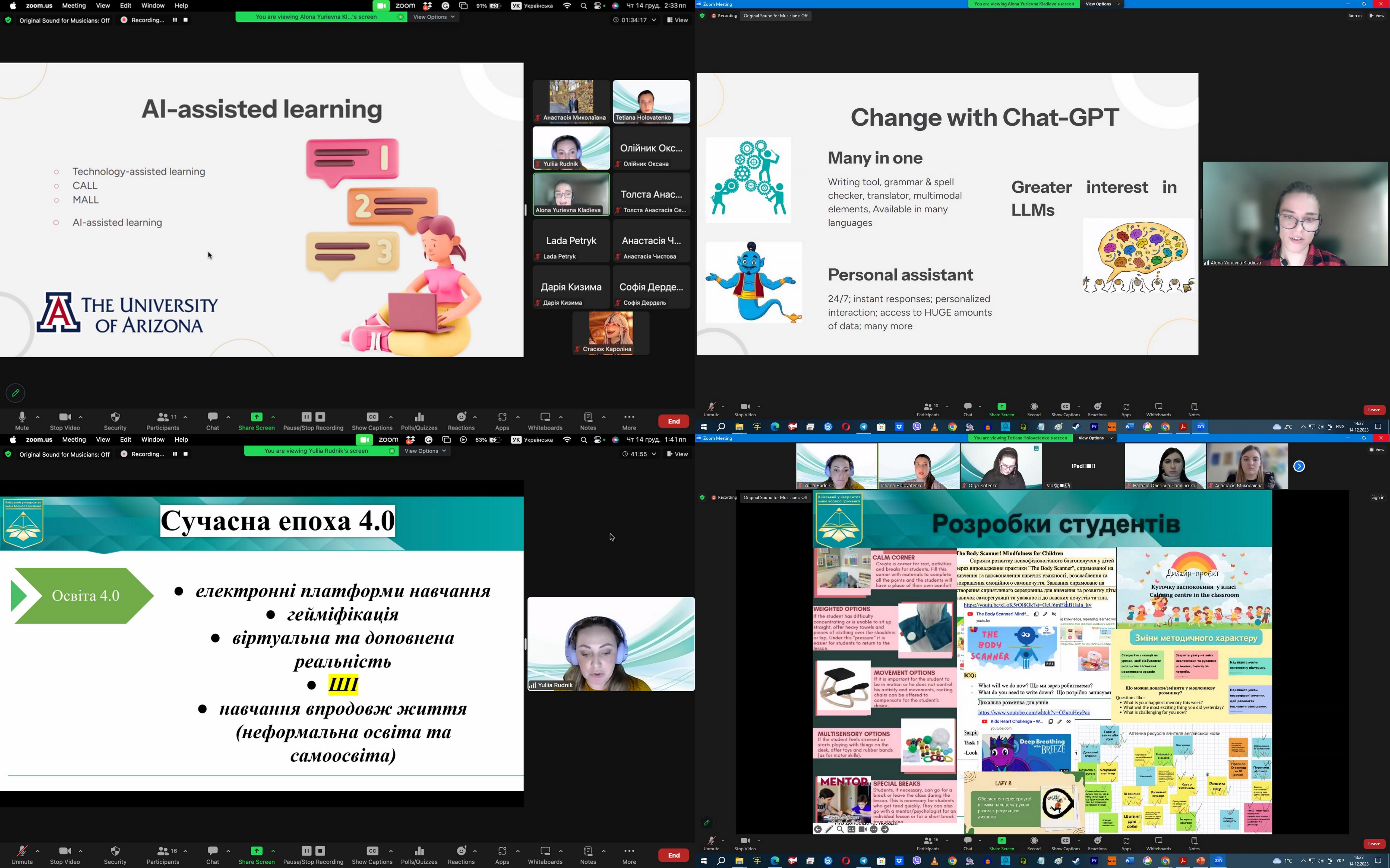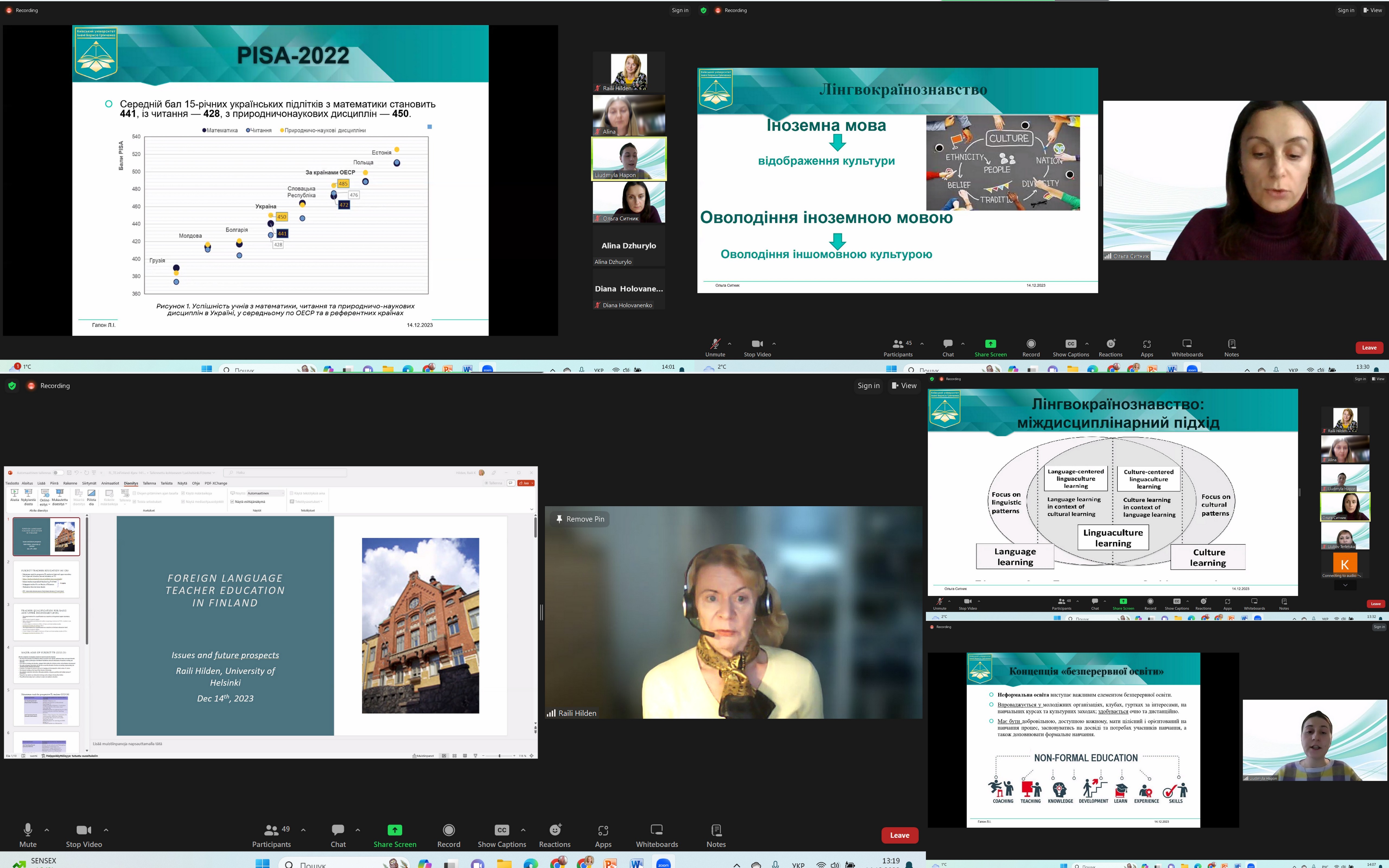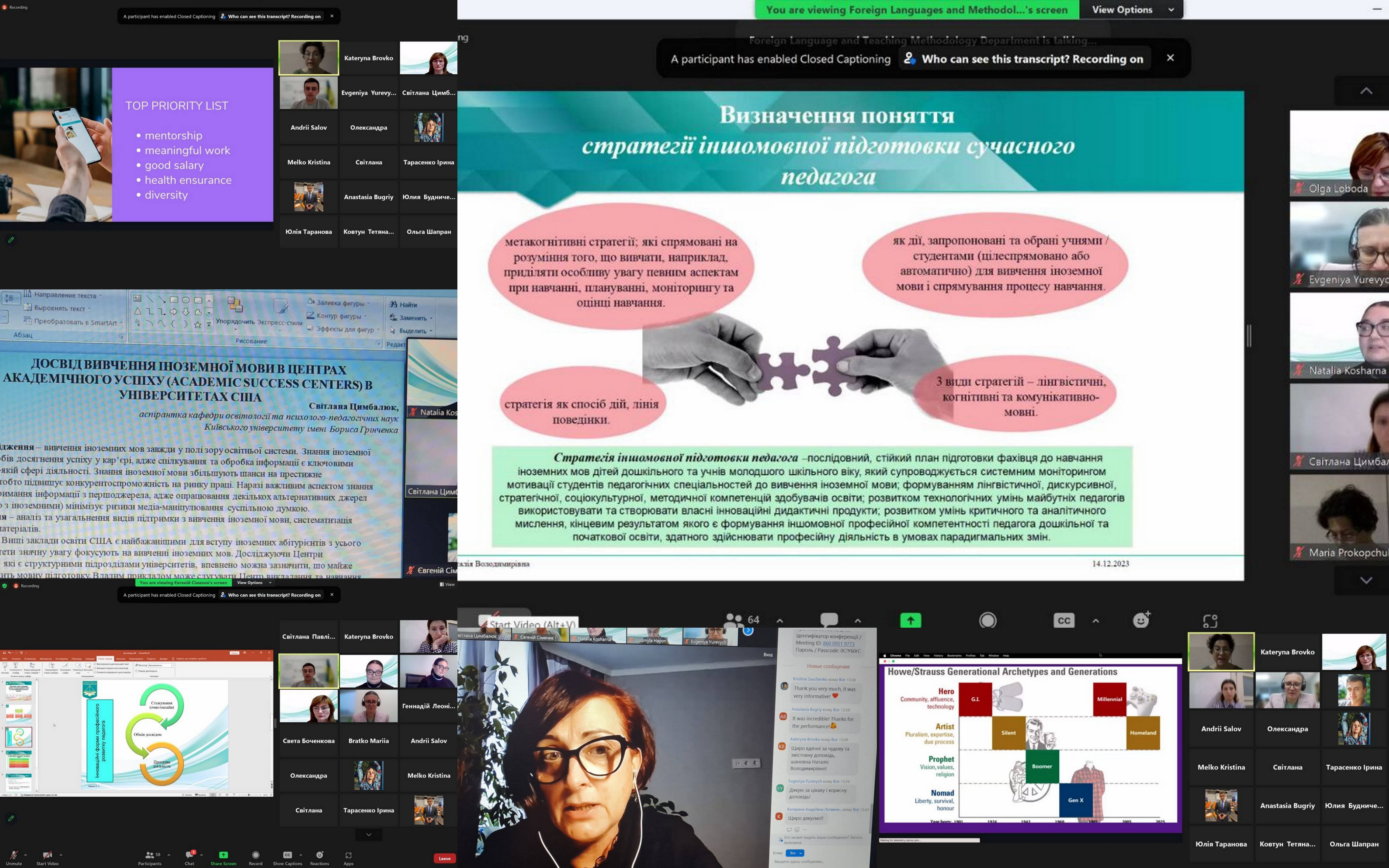 Учасники мали можливість ознайомитись із науковими доробками Ольги ШАПРАН, завідувача кафедри освітології та педагогічної інноватики Університету Григорія Сковороди в Переяславі, доктора педагогічних наук, професора (“Тенденції розвитку іншомовної педагогічної освіти в Україні: сучасні виклики, інновації та перспективи”); Наталії ПИЛЯЧИК, доцента кафедри англійської філології факультету іноземних мов Прикарпатського національного університету імені Василя Стефаника, кандидата філологічних наук, доцента (“Глобальні трансформації у сфері мовної освіти: активні стратегії, виклики та перспективи”); Валерія РЕДЬКА, завідувача відділу навчання іноземних мов Інституту педагогіки НАПН України, доктора педагогічних наук, старшого наукового співробітника (“Тенденції розвитку сучасної шкільної іншомовної освіти”); Олега КОМАРА, завідувача кафедри англійської мови та методики її навчання Уманського державного педагогічного університету імені Павла Тичини, доктора педагогічних наук, професора (“Виклики та перспективи викладання англійської мови за професійним спрямуванням в умовах воєнного часу”).