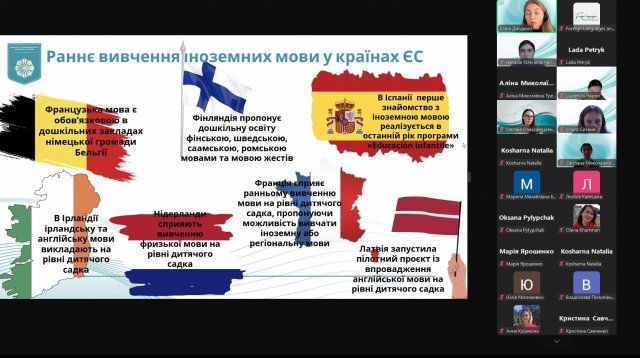 Навчально-методичний семінар проходив у форматі live-stream  майстерок, упродовж яких було розглянуто сучасні підходи та методи навчання англійської мови дітей дошкільного віку; ознайомлено з можливостями інтеграції у навчанні іноземної мови дітей дошкільного віку крізь призму європейського досвіду; представлено технології доповненої реальності як інноваційний засіб навчання іноземних мов дітей старшого дошкільного віку та учнів молодшого шкільного віку: від теорії до практичних кейсів; презентовано методичні поради вчителю англійської мови щодо навчання усного мовлення у початковій школі; виокремлено особливості навчання іноземної мови учнів початкової школи в епоху кліпового мислення покоління Альфа; представлено методичний свіфт-порадник для вчителів англійської мови в початковій школі; ознайомлено із технологією читання фотографій на уроках; уточнено окремі питання формувального оцінювання на уроках англійської мови у початковій школі; вивчено зарубіжний досвід навчання іноземної мови учнів мультикультурних та багатомовних класів початкової школи (на прикладі Греції).