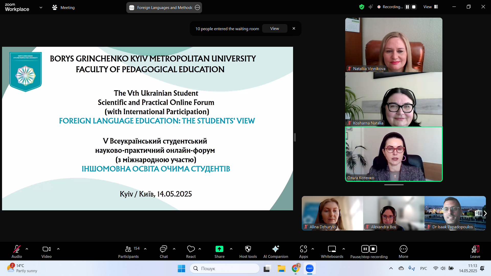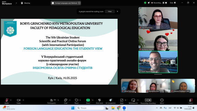 14 травня 2025 року в межах проведення Фестивалю науки – 2025 (до Дня науки в Україні) в Київському столичному університеті імені Бориса Грінченка, за ініціативи Факультету педагогічної освіти, відбувся V Всеукраїнський студентський науково-практичний онлайн-форум (з міжнародною участю) «Іншомовна освіта очима студентів».