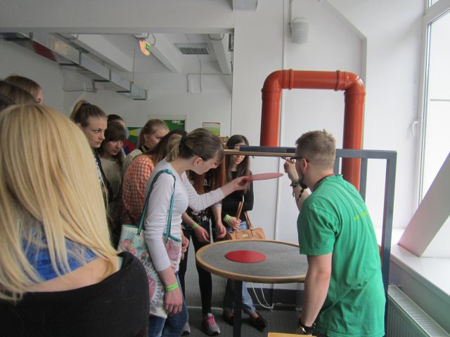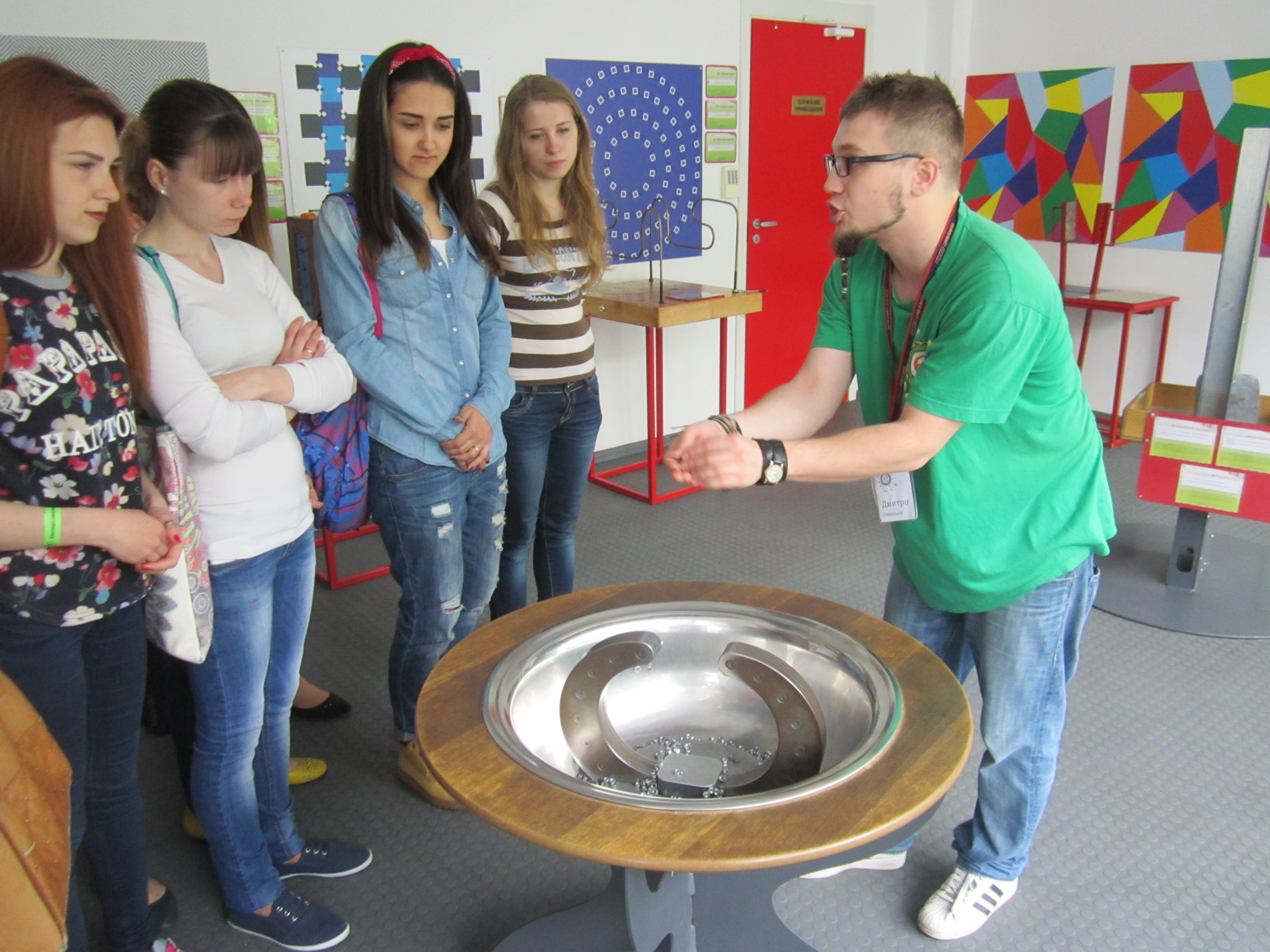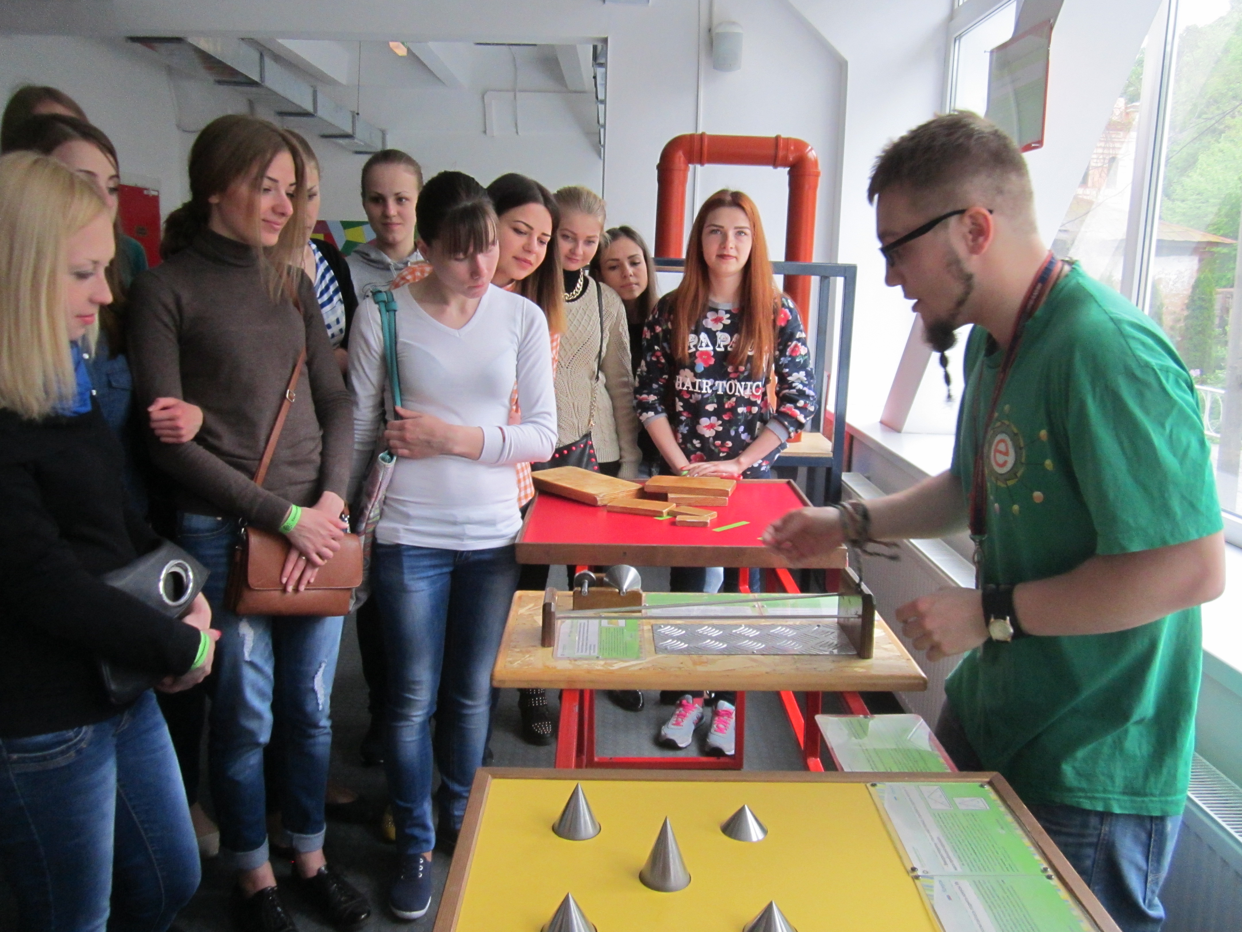 07 травня 2015 р. у межах вивчення теми «Modern Science and Technology (Сучасна наука і техніка)» студенти групи ПОб-4-12-2.0д (ІІІ курс, ОКР «бакалавр», напрям підготовки «Початкова освіта») під керівництвом асистента кафедри іноземних мов і методик їх навчання Лабунець Юлії Олегівни відвідали англомовну екскурсію на тему «Modern Science and Technology : how does everything work (Сучасна наука і техніка: як все працює)», яка проводилась у музеї популярної науки і техніки «Експериментаніумі».
