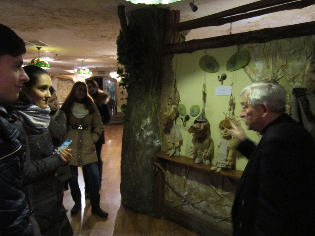 Знайомство з театром відбулося в рамках екскурсії, проведеної керівником літературно-драматургічної частини Київського академічного театру ляльок, заслуженим працівником культури України, відмінником освіти України – Поволоцьким Іллею Яковичем.