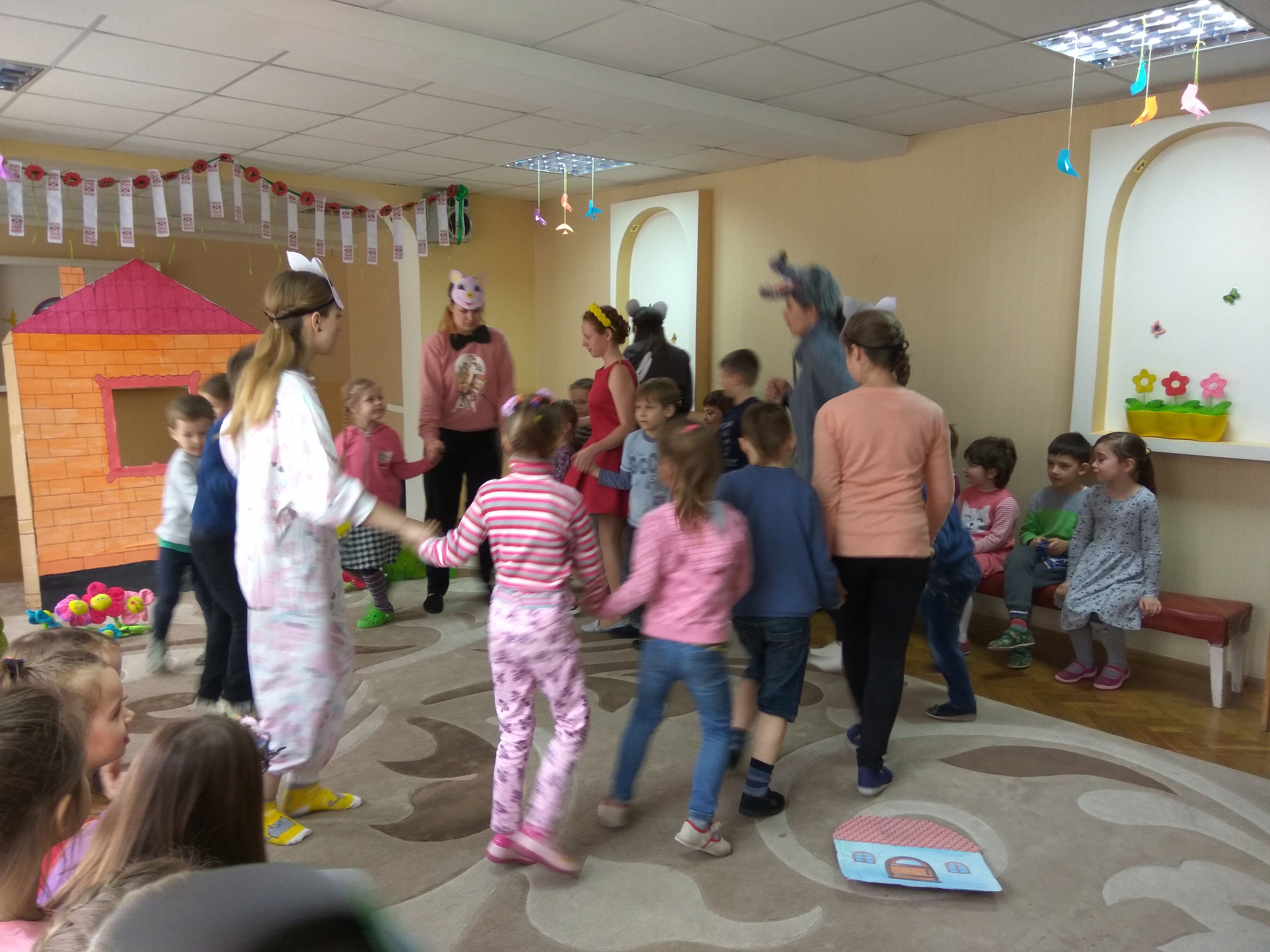 Маленькі глядачі з неабияким інтересом спостерігали за подіями героїв казок «A house in the wood», «Three little pigs», «The Elephant child», залюбки грали зі студентами в ігри та відгадували загадки, вчили нові та повторювали знайомі лексичні одиниці. Упродовж усього дійства в глядацькій залі відчувалася надзвичайно тепла, дружня атмосфера завдяки цікавому перебігу сюжетних ліній, акторській грі студентів, музичному супроводу та яскравим декораціям і костюмам героїв.