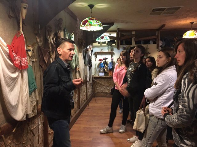 Першим блоком стало відвідування Київського академічного театру ляльок. Знайомство з театром відбулося в рамках екскурсії, проведеної керівником літературно-драматургічної частини Київського академічного театру ляльок, заслуженим працівником культури України, відмінником освіти України – Поволоцьким Іллею Яковичем.