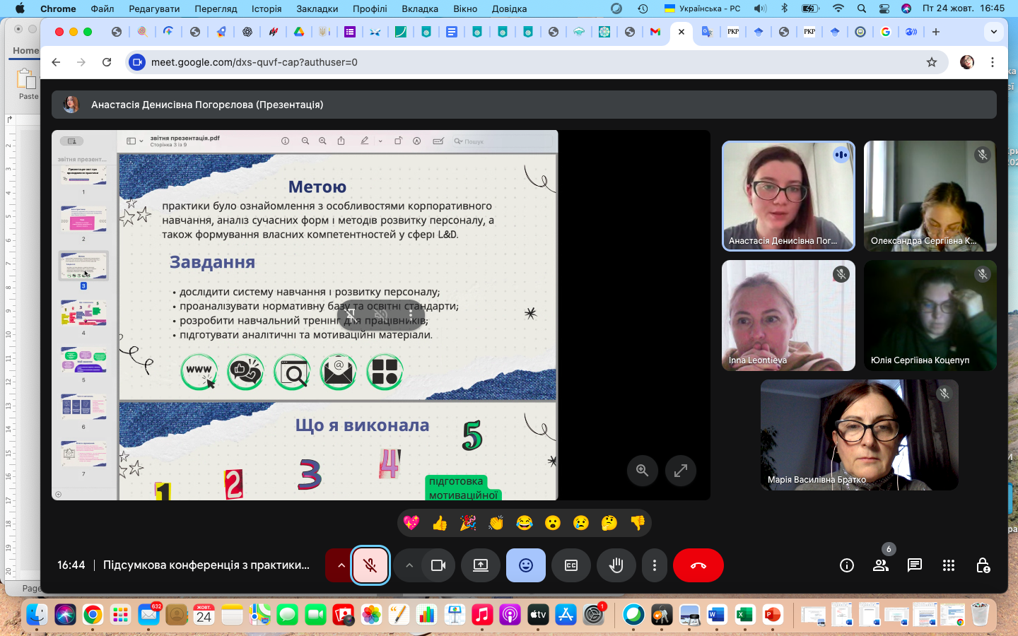 24 жовтня 2025 року на кафедрі освітології та психолого-педагогічних наук відбулася підсумкова конференція виробничої (педагогічної) практики магістрантів другого року навчання освітньої програми «Корпоративна освіта та розвиток персоналу» Київського столичного університету імені Бориса Грінченка.