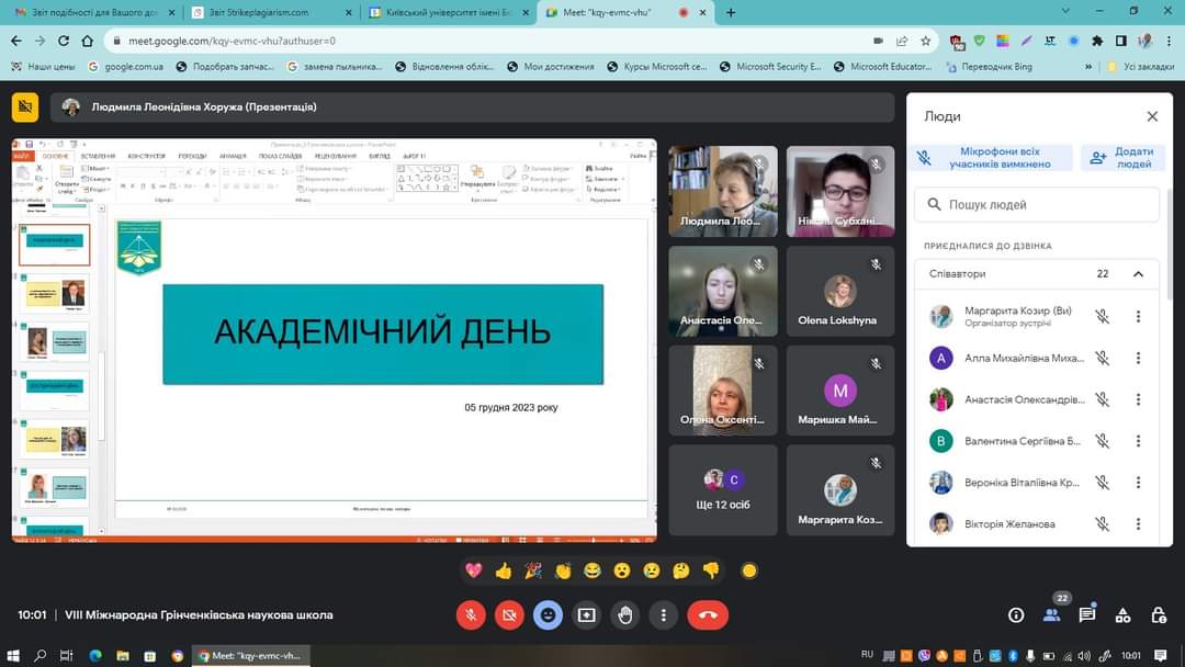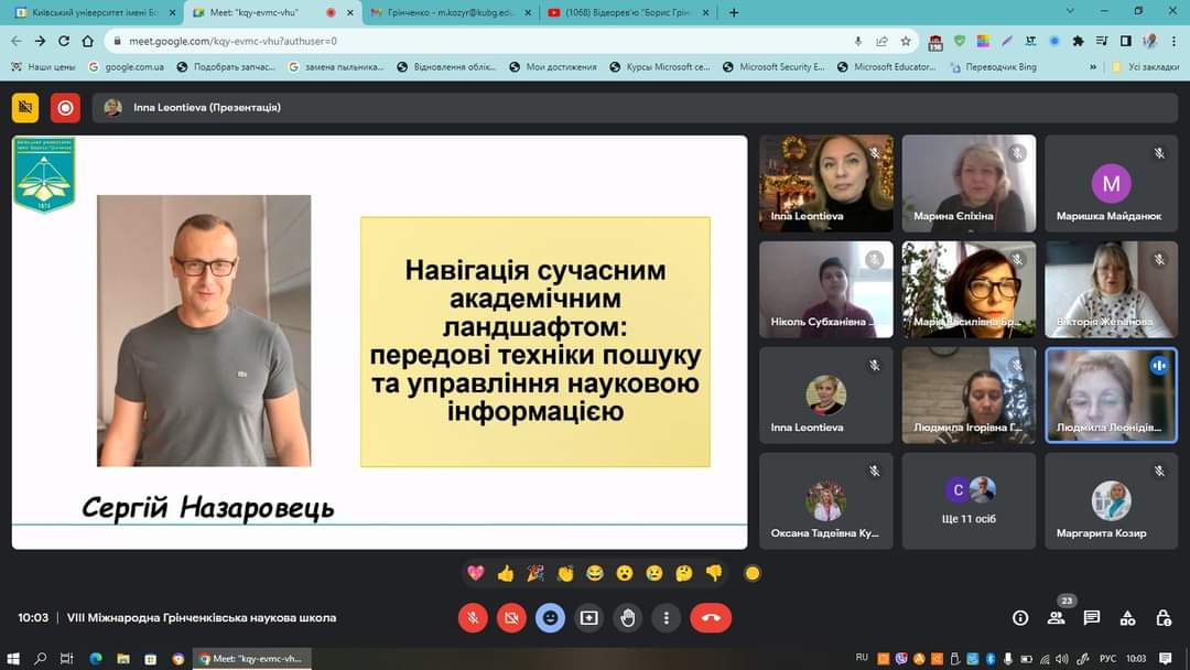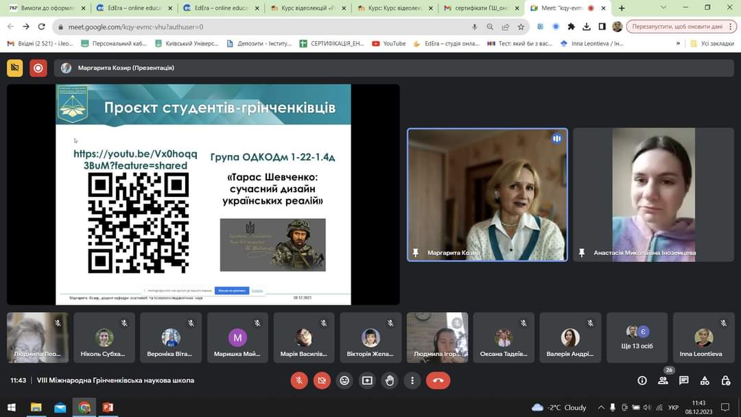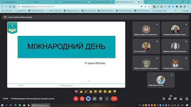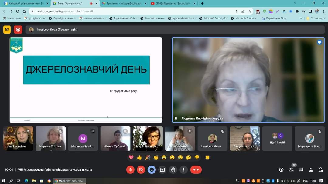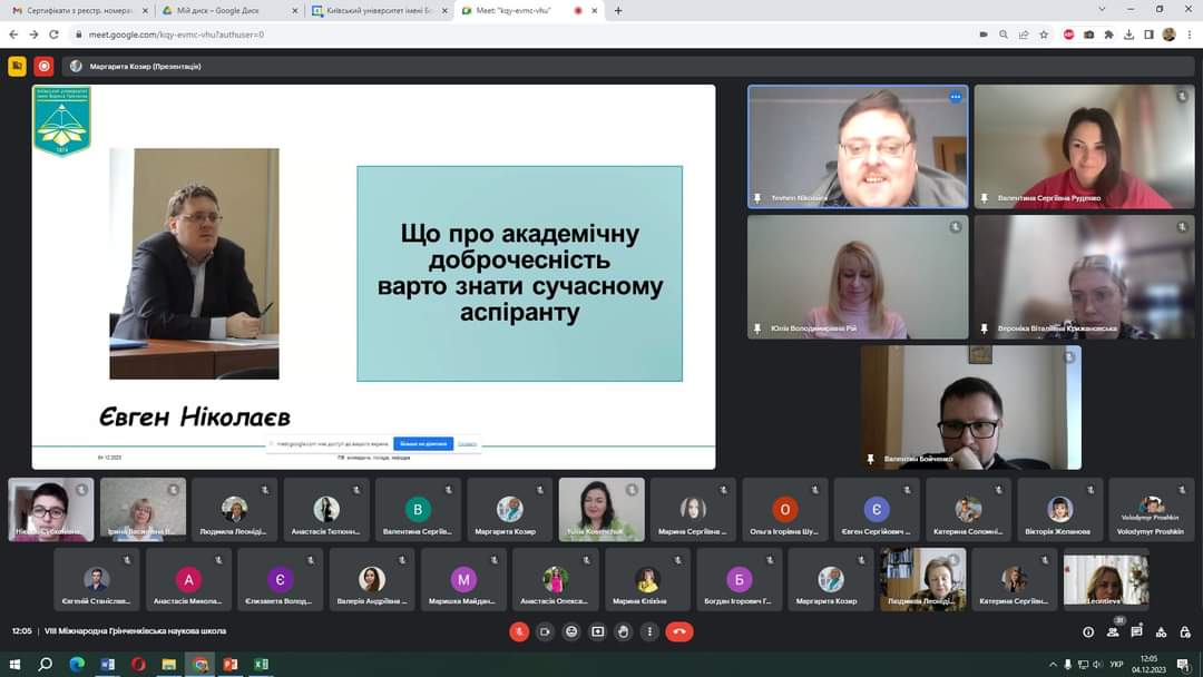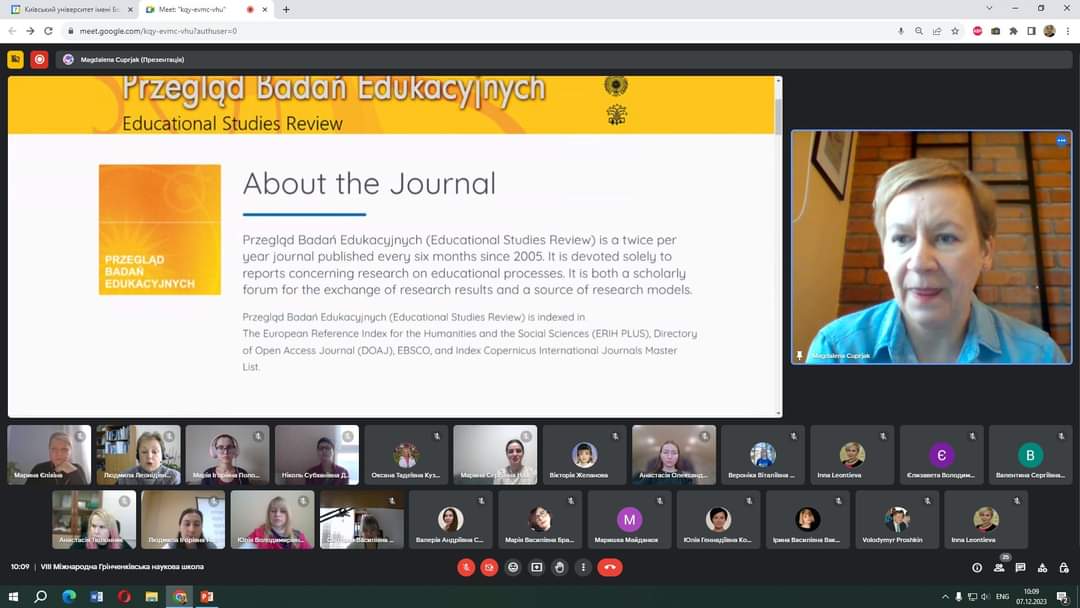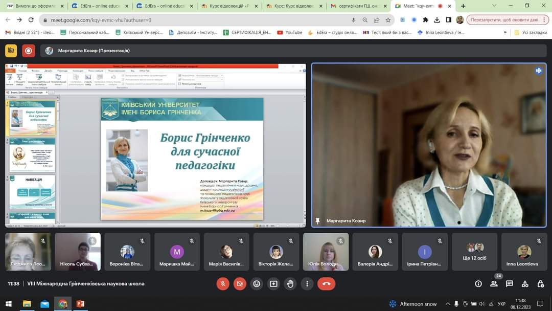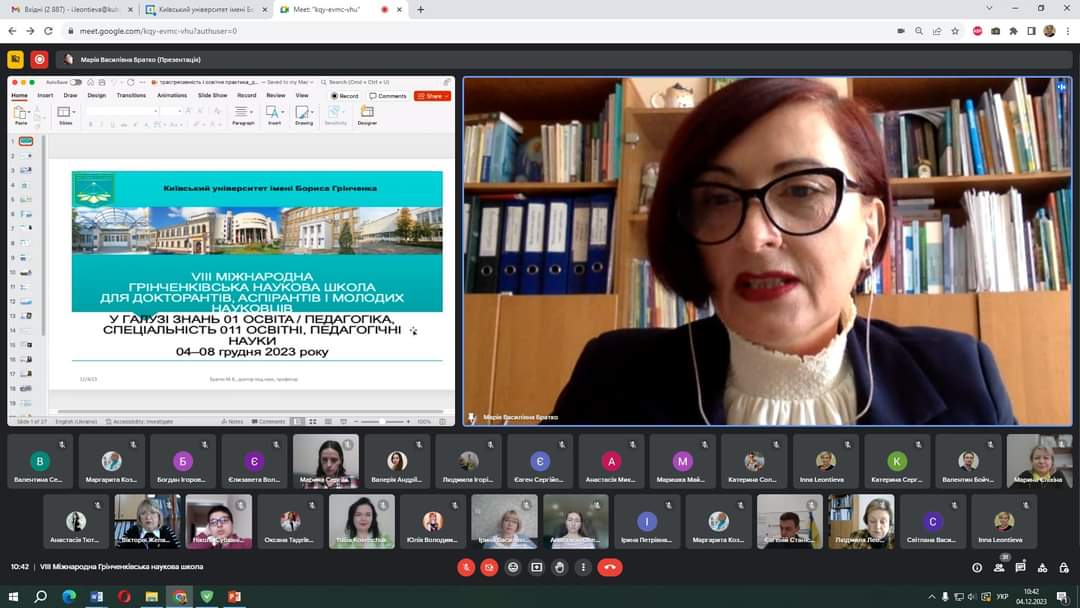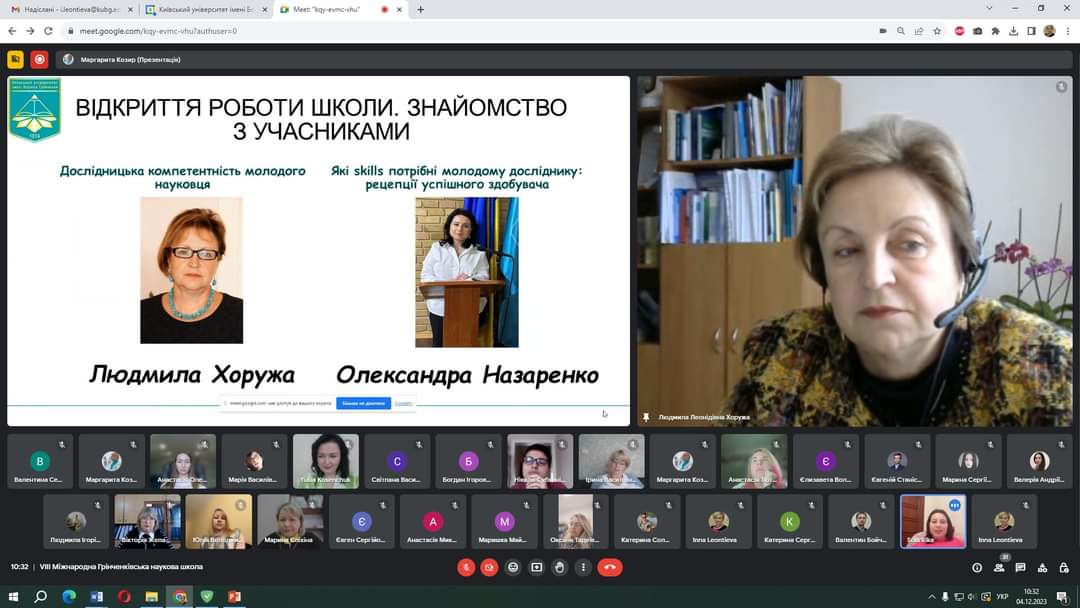 З 04 по 08 грудня 2023 року на базі Київського університету імені Бориса Грінченка традиційно працювала VIІІ MIЖHAPOДHА ГPIHЧEHKIBCЬKА HAУKOBА ШKOЛА ДЛЯ ДOKTOPAHTIB, ACПIPAHTIB І MOЛOДИX HAУKOBЦIB У ГAЛУЗI ЗHAHЬ 01 OCBITA / ПEДAГOГIKA, CПEЦIAЛЬHICTЬ 011 OCBITHI, ПEДAГOГIЧHI HAУKИ.