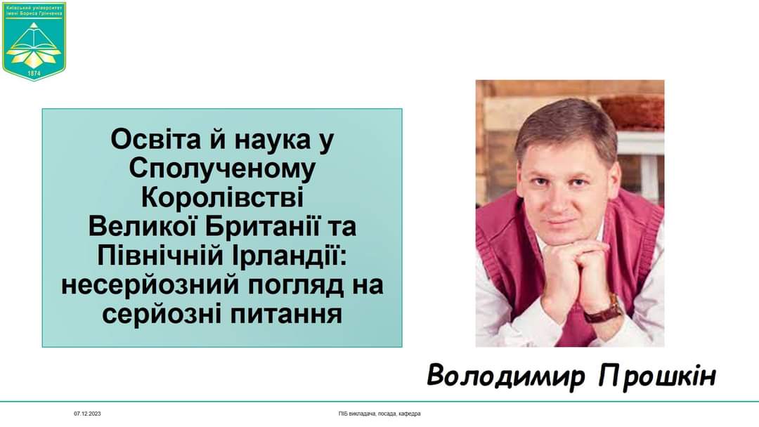 - Володимир Прошкін, академічний гість, Університет Лафборо, кафедра математичної освіти (Academic visitor, Loughborough University, Department of Mathematics Education), професор кафедри математики і фізики Факультету інформаційних технологій та математики Київського університету імені Бориса Грінченка, доктор педагогічних наук, професор ("Освіта й наука у Сполученому Королівстві Великої Британії та Північної Ірландії: несерйозний погляд на серйозні питання").