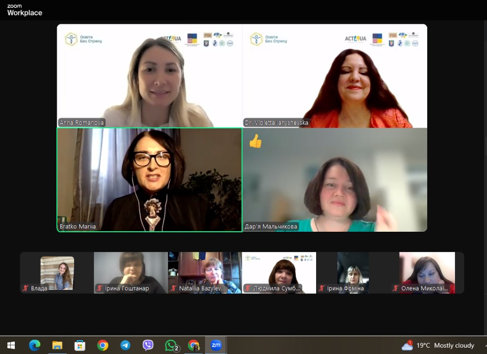 Учасники вебінару мали змогу дізнатися: яким чином можна взяти участь у проєкті #ОсвітаБезСтресу, які виклики психоемоційного клімату в українських закладах освіти виявило проведене в рамках проєкту дослідження, як американські заклади освіти підтримують ментальне здоров’я студентів тощо.