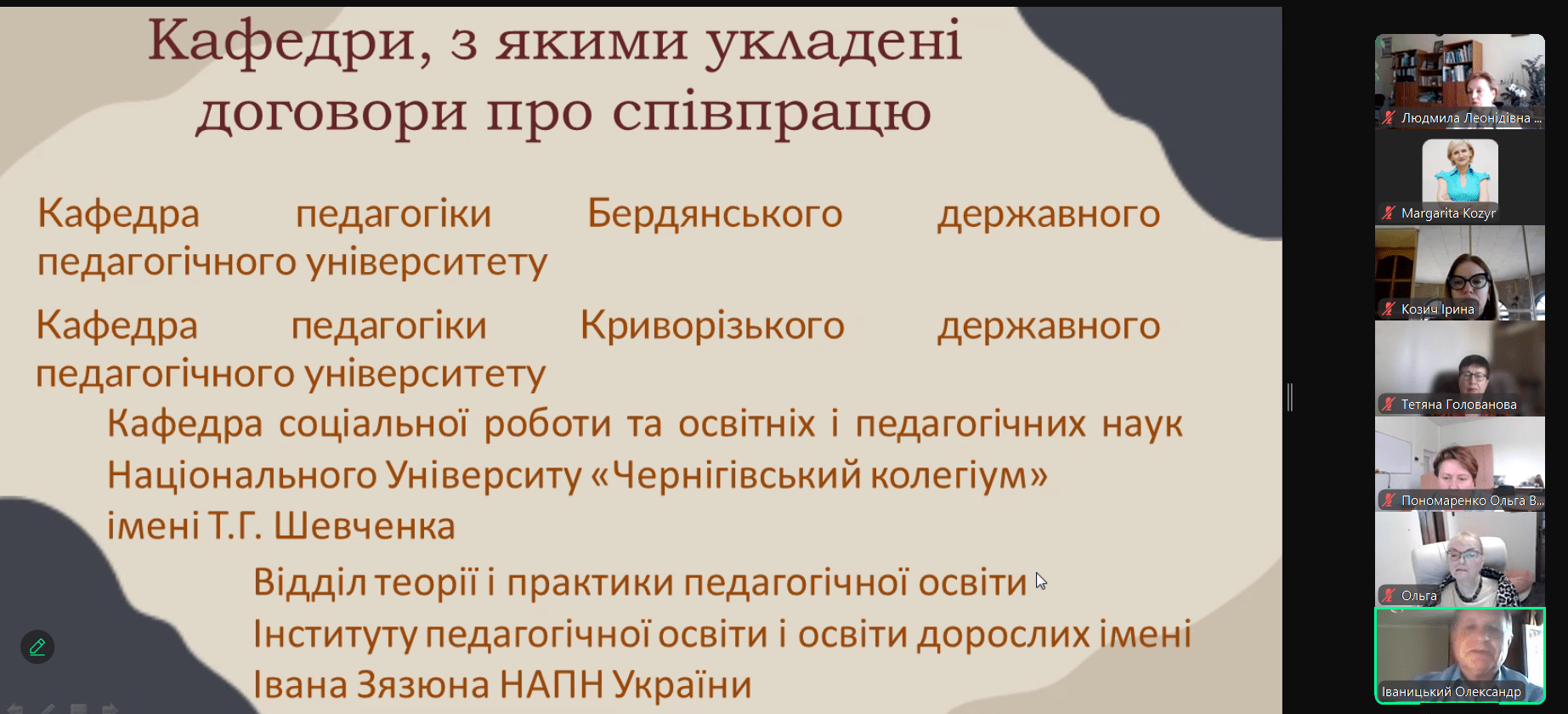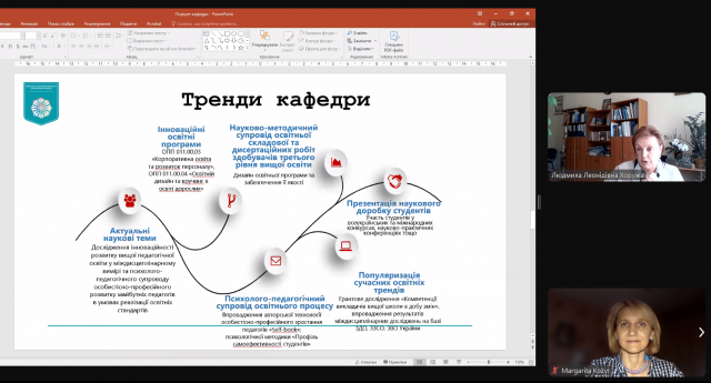Тема доповіді: «Сучасний контекст трансформацій педагогічної освіти». - Желанова Вікторія — доктор педагогічних наук, професор кафедри освітології та психолого-педагогічних наук Київського столичного університету імені Бориса Грінченка, гарант освітньо-професійної програми 011.00.04 «Освітній дизайн і коучинг в освіті дорослих».