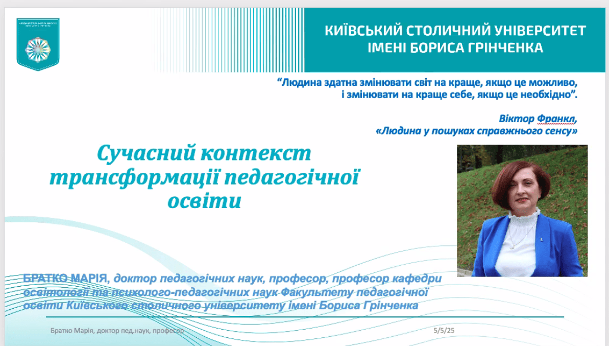 05 травня 2025 року кафедра освітології та психолого-педагогічних наук Київського столичного університету імені Бориса Грінченка спільно з кафедрою педагогіки та психології освітньої діяльності Запорізького національного університету провела науково-практичний семінар, присвячений сучасним викликам та тенденціям у сфері професійно-педагогічної підготовки майбутніх фахівців освітньої галузі.