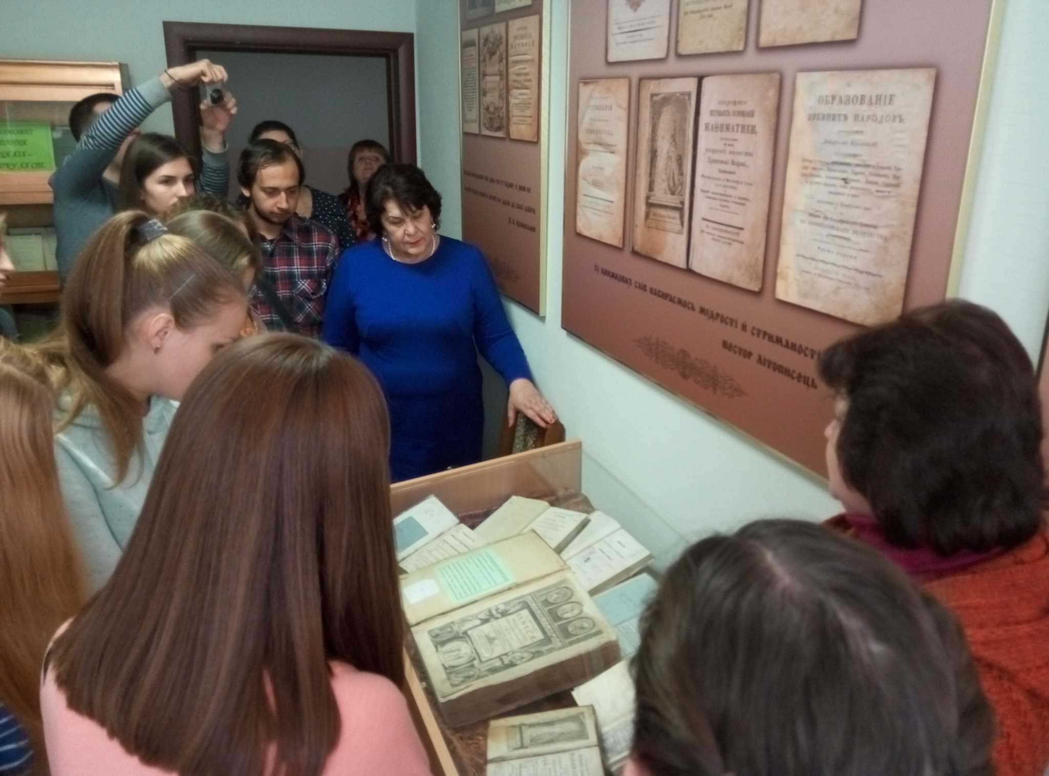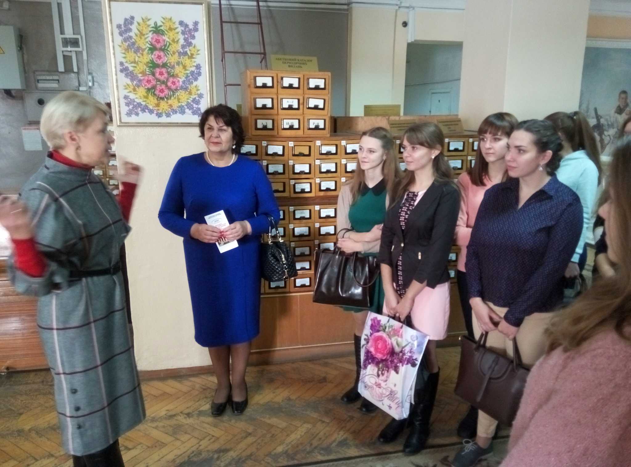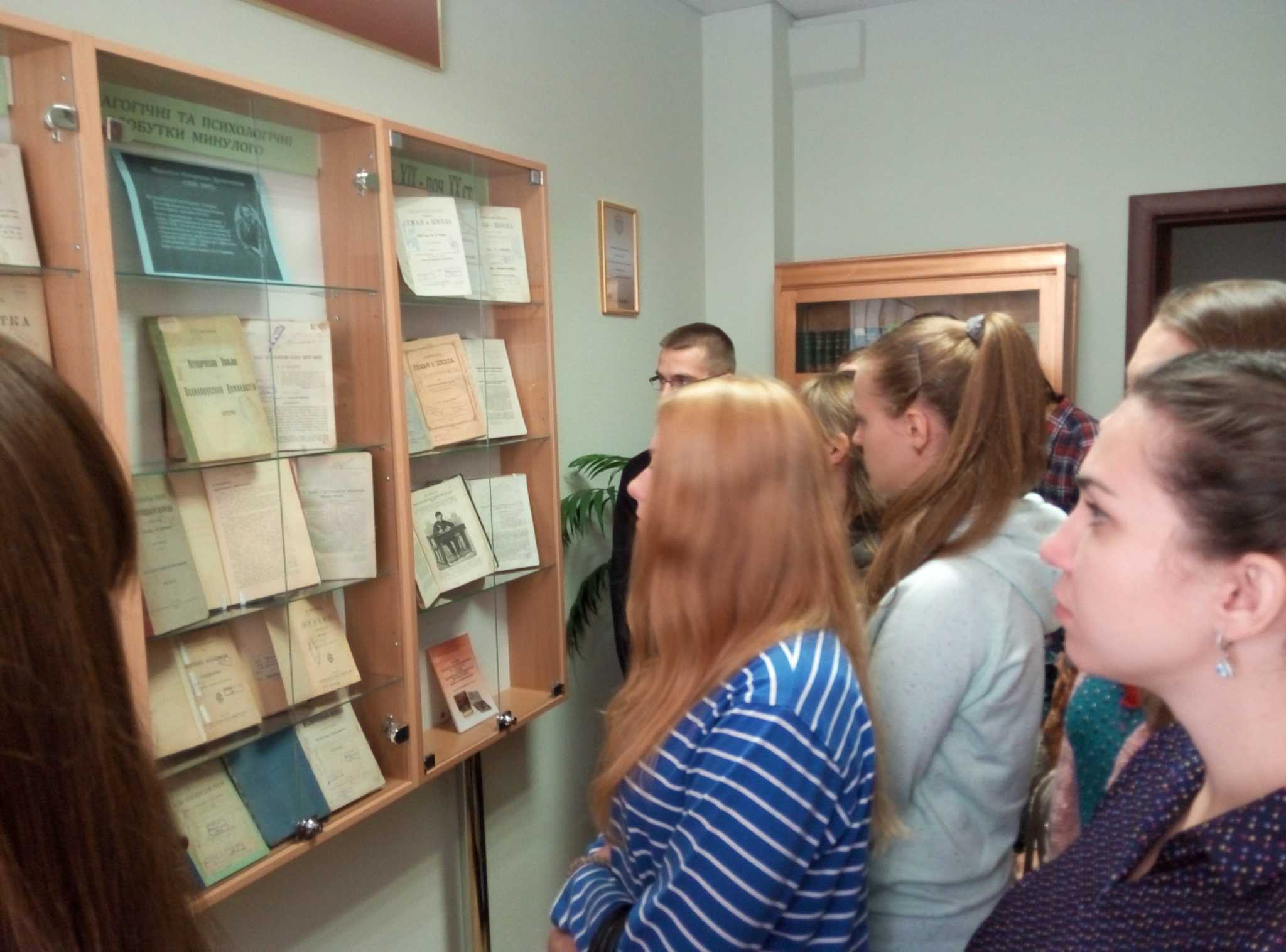 У рамках зустрічі В. І. Якубовський, кандидат філологічних наук, завідувач відділу соціокультурних комунікацій та міжнародних зв’язків, провів оглядову екскурсію бібліотекою, у ході якої ознайомив студентів із структурою та історією ДНПБ України ім. В. О. Сухомлинського НАПН України; О. Б. Бондарчук, завідувач сектору рідкісних видань, презентувала експозицію кімнати-музею рідкісної книги; Л. І. Самчук, завідувач відділу наукової інформаційно-бібліографічної діяльності, розповіла про інформаційні ресурси ДНПБ України ім. В. О. Сухомлинського НАПН України.
