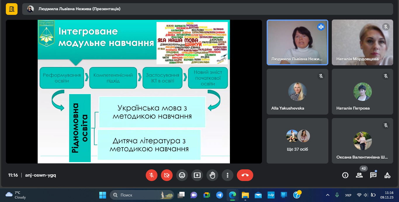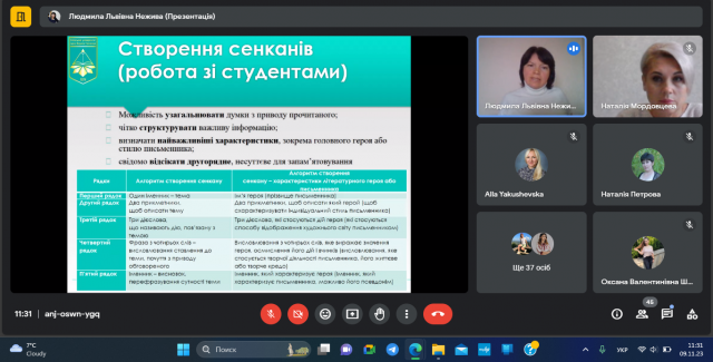 09 листопада 2023 року відбулася гостьова онлайн-лекція з теми «Сучасні технології в системі мовно-літературної освіти майбутніх учителів початкових класів» для здобувачів спеціальностей 013 Початкова освіта, 013 Початкова освіта (Українська мова і література) другого (магістерського) рівня вищої освіти Навчально-наукового інституту педагогіки і психології Луганського національного університету імені Тараса Шевченка.