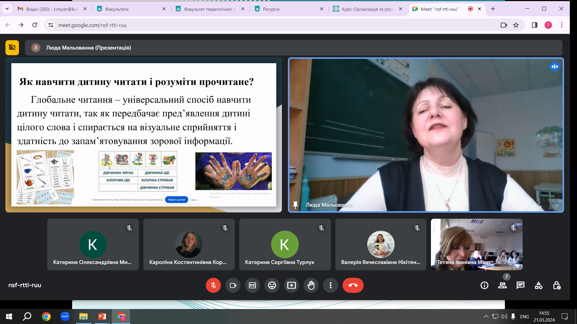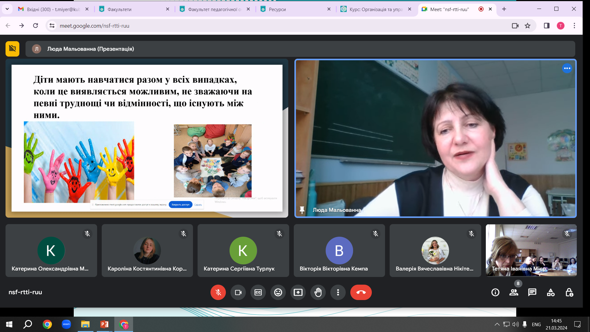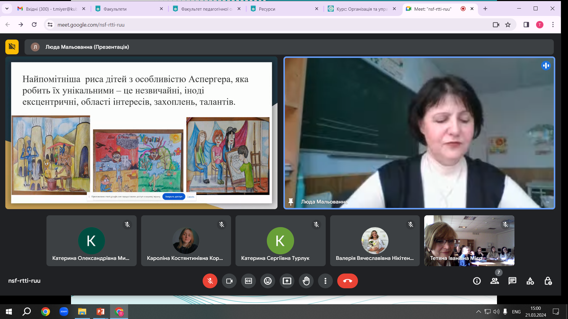 21 березня 2024 року для здобувачів другого (магістерського) рівня вищої освіти ОПП 013 Початкова освіта Факультету педагогічної освіти Київського столичного університету імені Бориса Грінченка в рамках викладання навчальної дисципліни «Організація та управління в початковій школі: правові аспекти управління» відбулася гостьова бінарна офлайн-онлайнова лекція «Правове підґрунтя реалізації інклюзивної освіти. Примірне положення про команду психолого-педагогічного супроводу дитини з особливими освітніми потребами в закладі загальної середньої та дошкільної освіти».