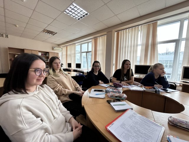 До участі в лекції гостьовий лектор приєдналася дистанційно, тобто було реалізовано офлайн-онлайнове навчання студентів.
